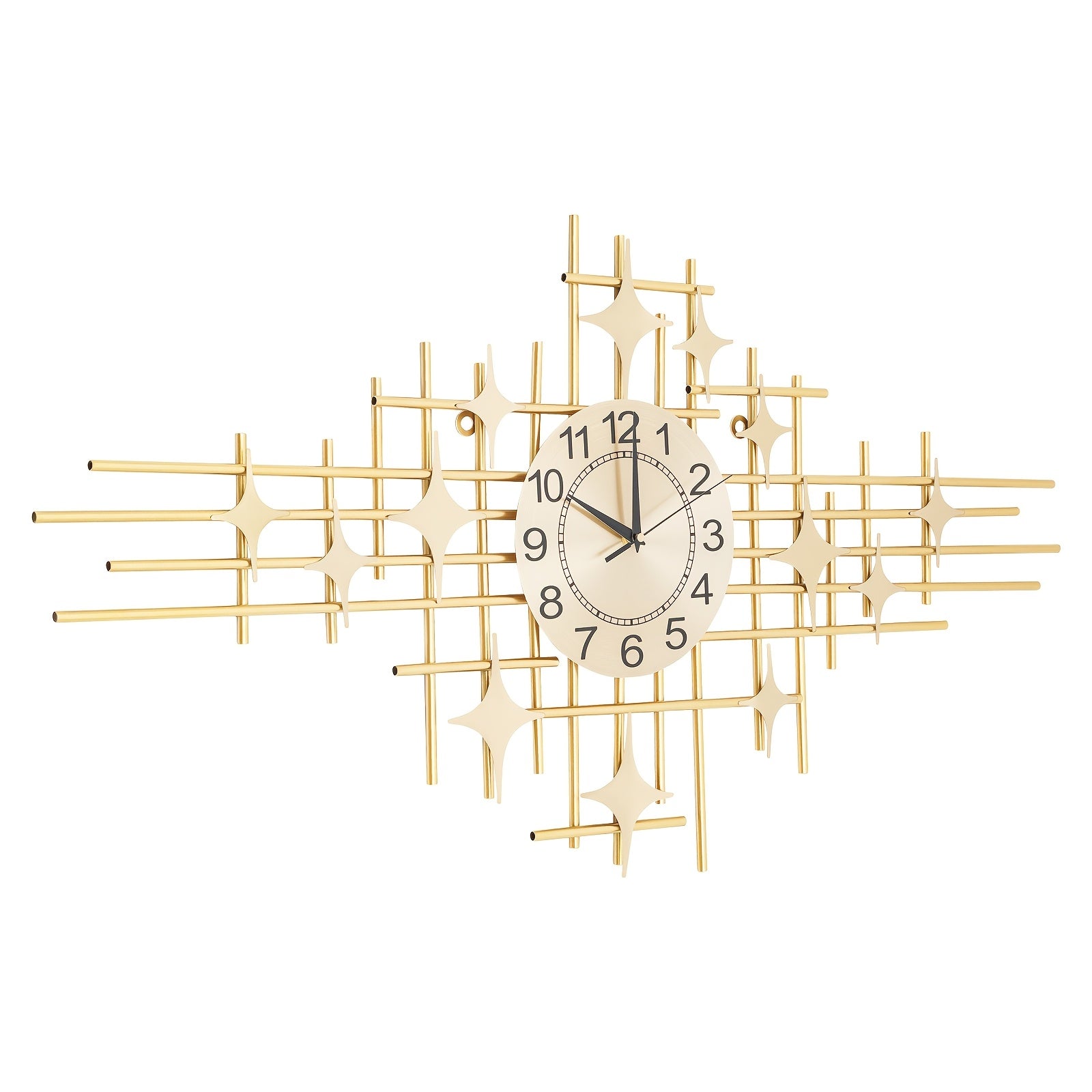 39.37x19.69 Inch Modern Golden Metal Wall Clock - Silent Non-Ticking Decorative Clock with Star Pattern, Battery Operated (AA Not Included) for Living Room, Bedroom, Office Decor, Wall Clock Living Room