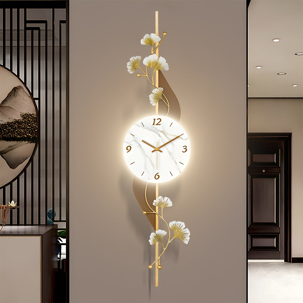 3D Ginkgo Leaves Metal Wall Art with Light, Clocks for Living Room, Large Wall Clock, Silent Wall Clock, Retro Metal Ginkgo Leaf Design, for Bedroom Kitchen Decorative Wall Clocks (39, 5''x9, 4'' )