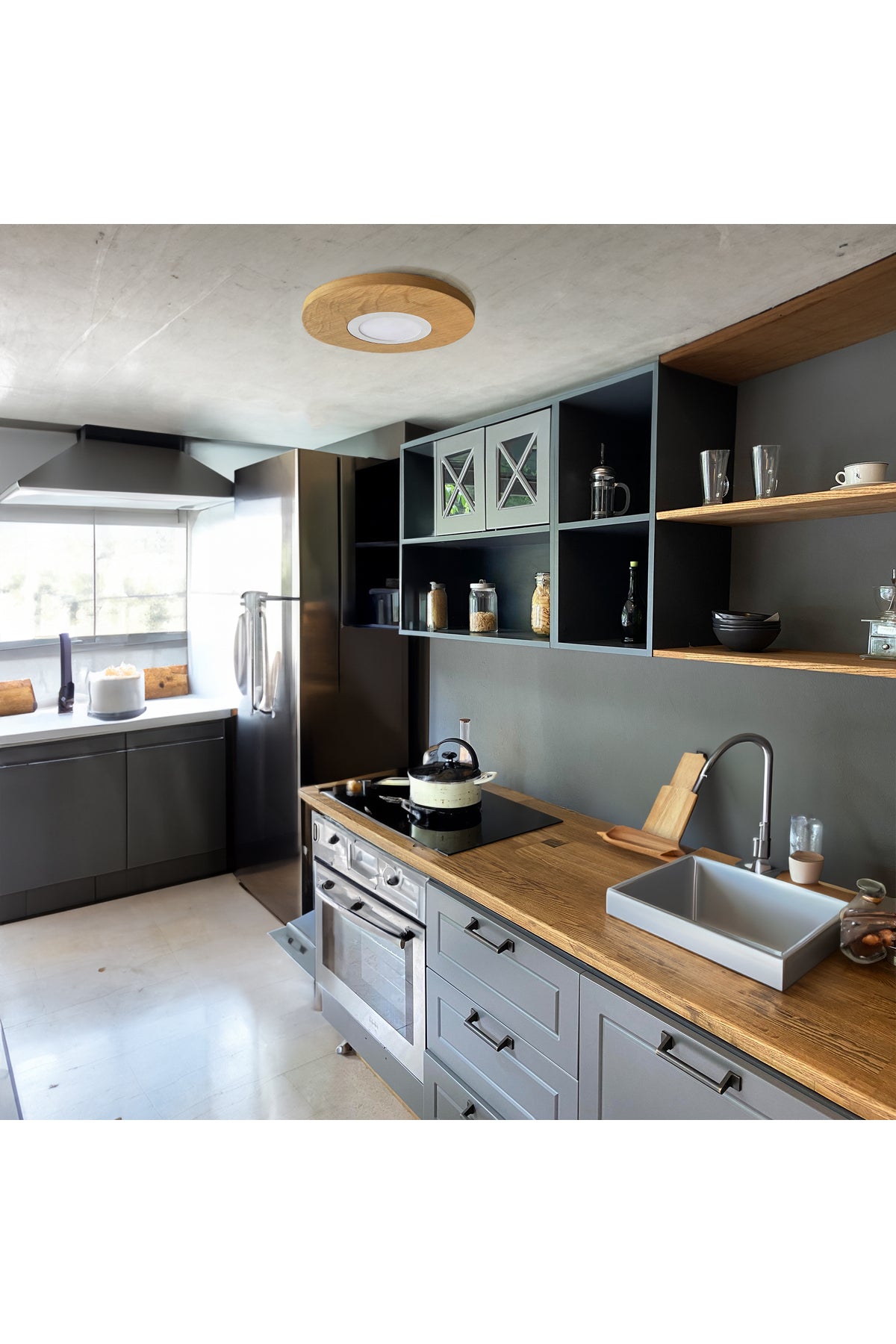 42 cm – Runde LED-Deckenleuchte aus Eichenfurnier, Schlafzimmer-, Flur- und Badezimmerlampe