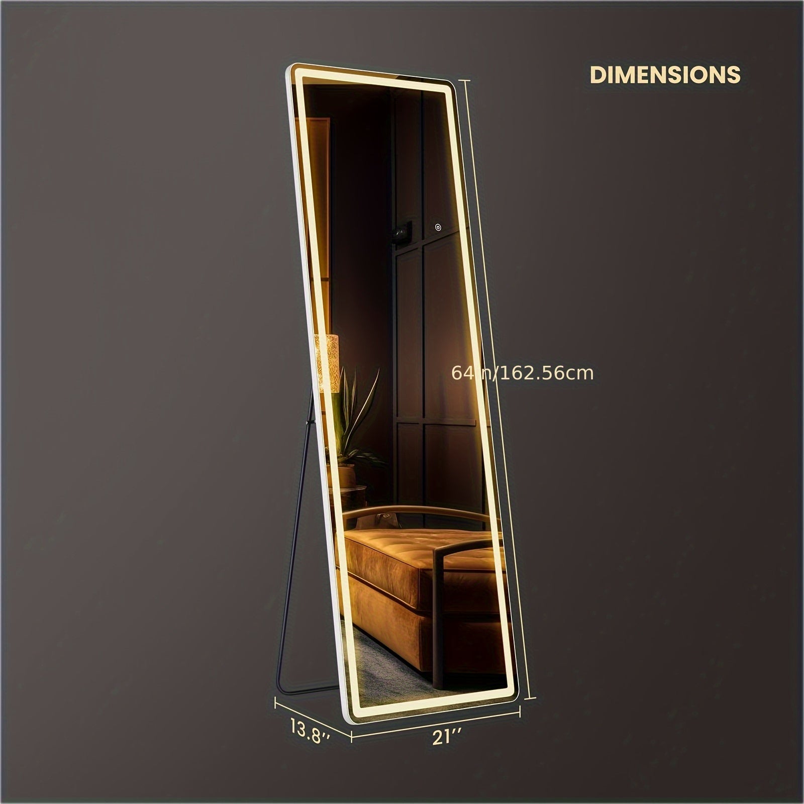 64"x21" Extra Long Full-Length Mirror with LED Lights - Modern Floor Standing or Wall-Mounted/Leaning Lighted Mirror with Touch Sensitivity, Bright LED Lighting for Home Gym,