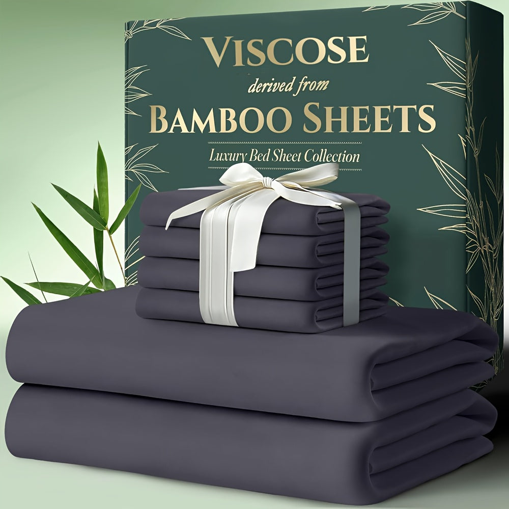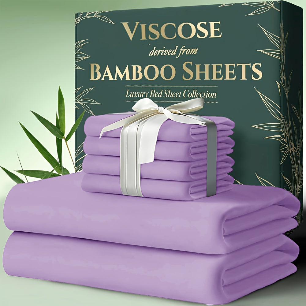6pcs Bamboo Cooling Bed Sheets Sets Queen Size - Ultra Soft & Luxuriously Cooling for Hot Sleepers, 17" Deep Pocket, Double Stitching, Christmas Decorations Perfect for Christmas Gift - Queen Bed Sheets (Purple)