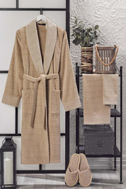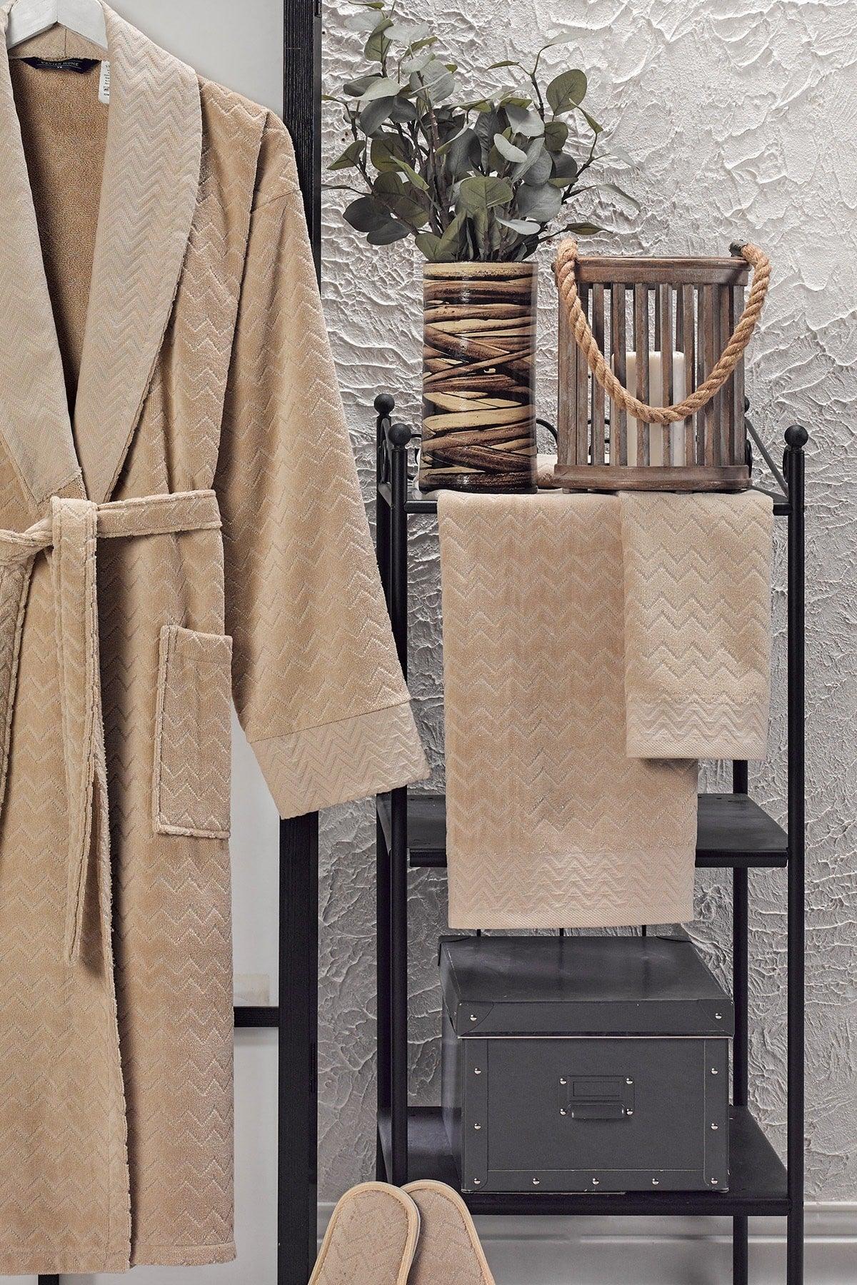 Ansaaj Velvet Jacquard 4 -teiliges Bademantel Set Beige