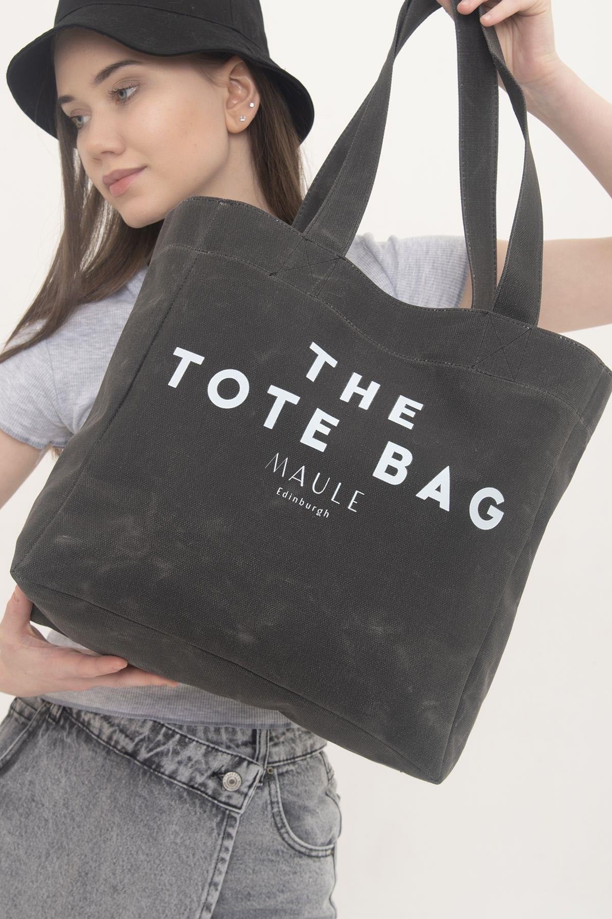 Anthrazit Anthrazit Maule Tote Bag Bedruckte mittelgroße Wachsleinwand 100% Baumwolle Damen-Umhängetasche