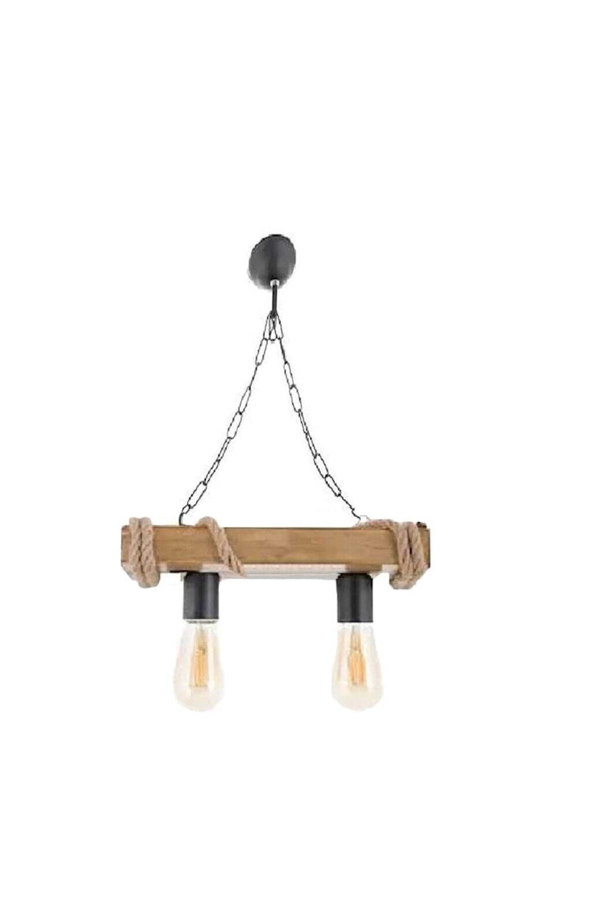 Authentischer 2-teiliger Kronleuchter aus natürlichem Holzseil