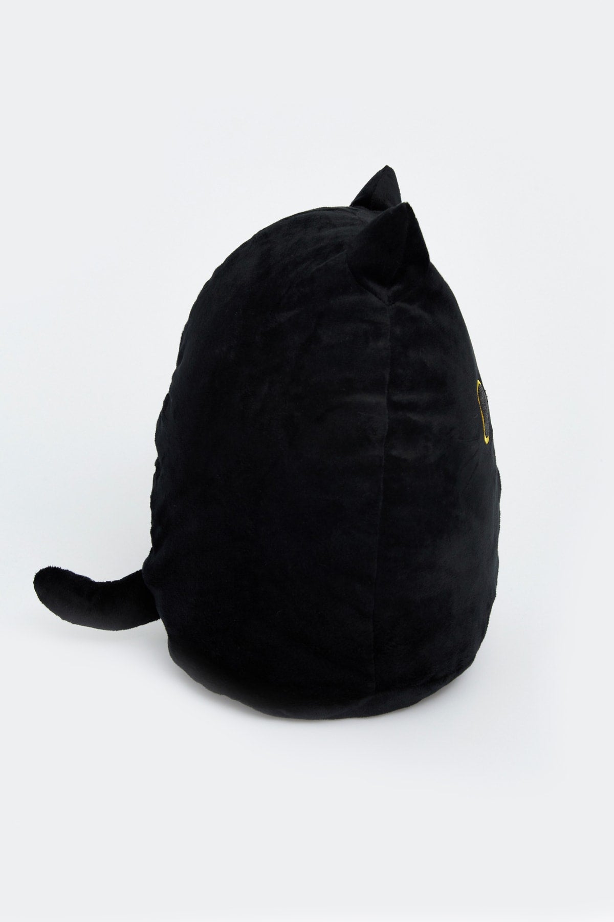 Schwarze Katze Dekokissen Plüsch 35 cm Schwarz