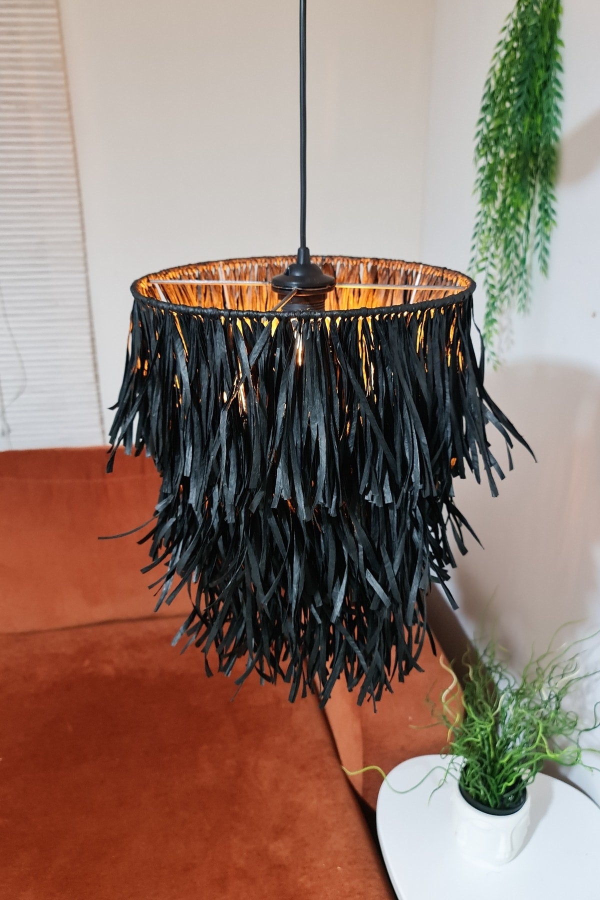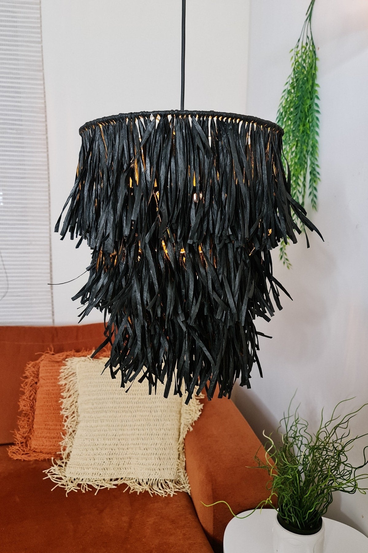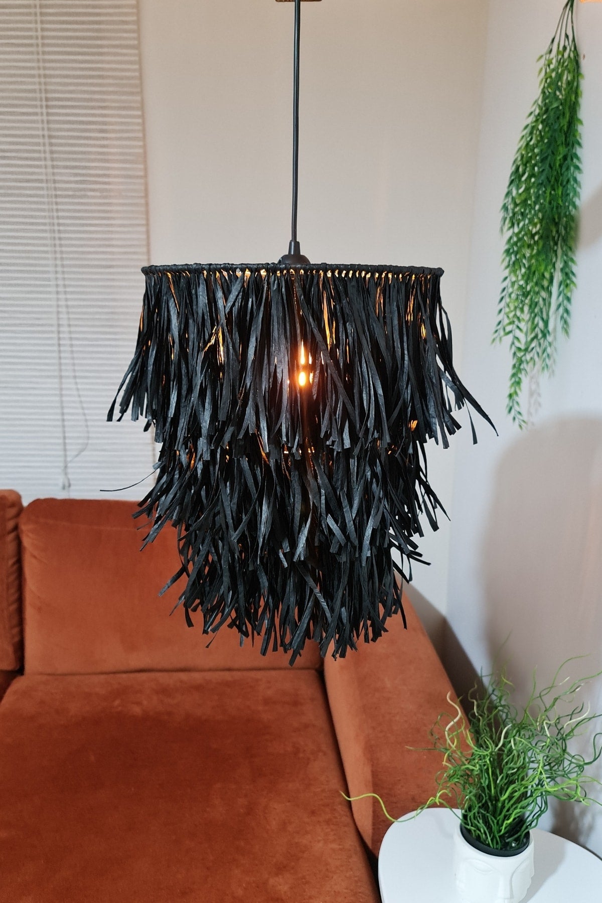 Böhmischer Kronleuchter mit Fransen, schwarz, handgefertigt