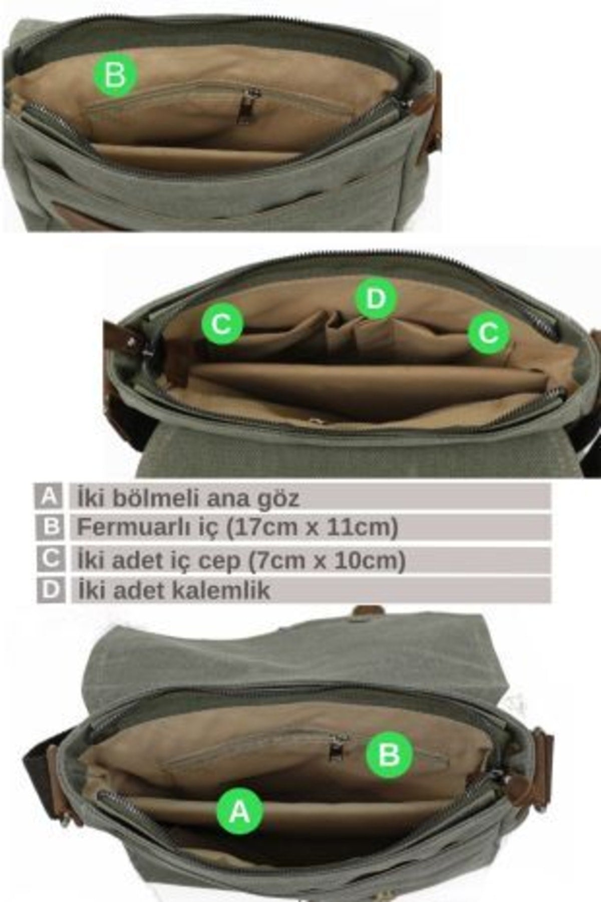 Cappadocia 4035 Teos, echtes Leder, wasserdicht, Khaki-Grün, Postman-Schultertasche aus gewachstem Canvas, Laptoptasche