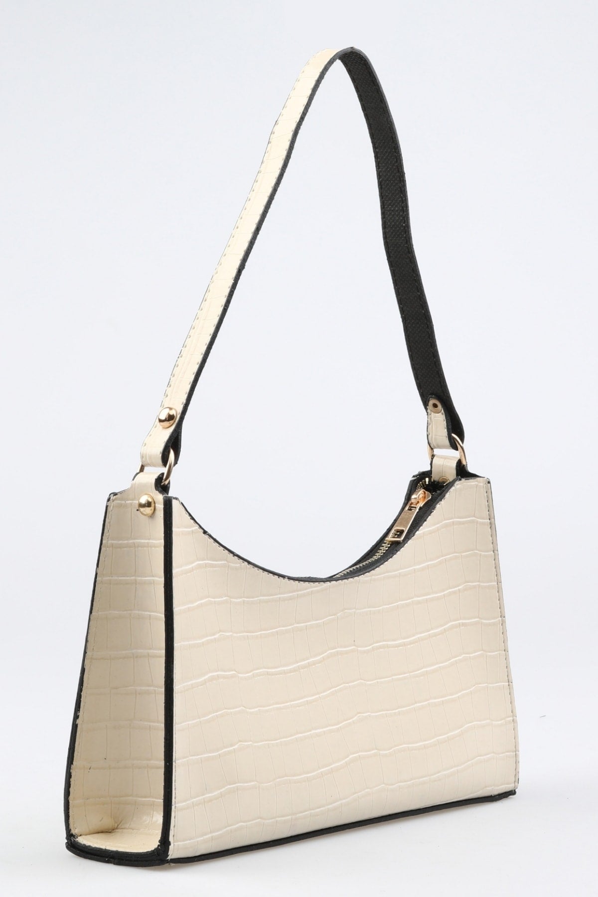 Cremefarbene Baguette-Hand- und Schultertasche mit Krokodilmuster Gc009011K