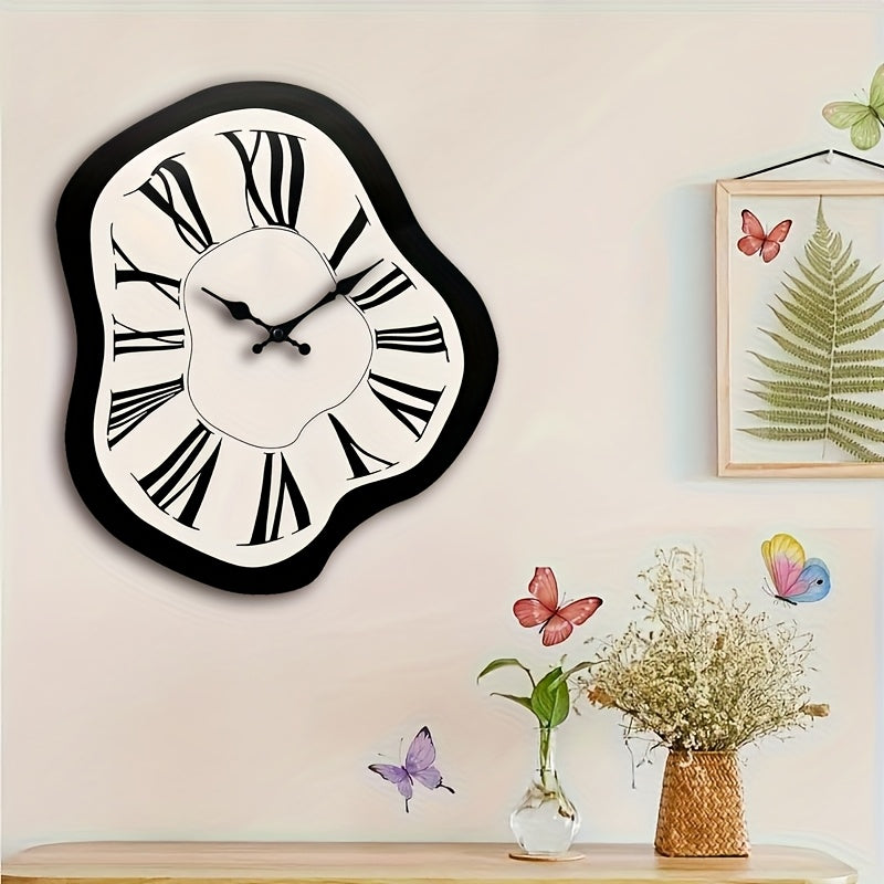Creative Wall Clock with Geometric Twist Design, Minimalist Roman Numerals and Irregular Cutout, Silent Quartz Movement – Battery Operated (Batteries Not Included), Suitable for Bedroom, Living Room, Office, Kitchen, or Bathroom