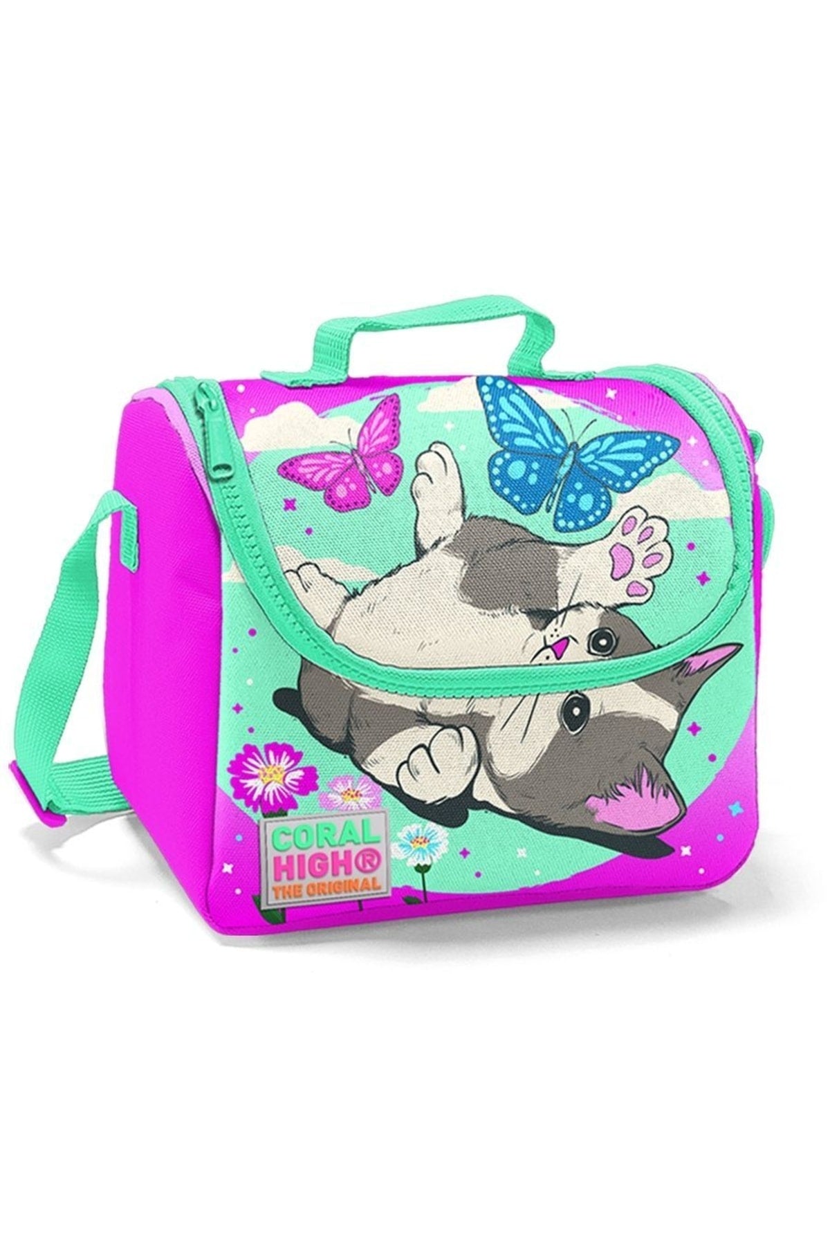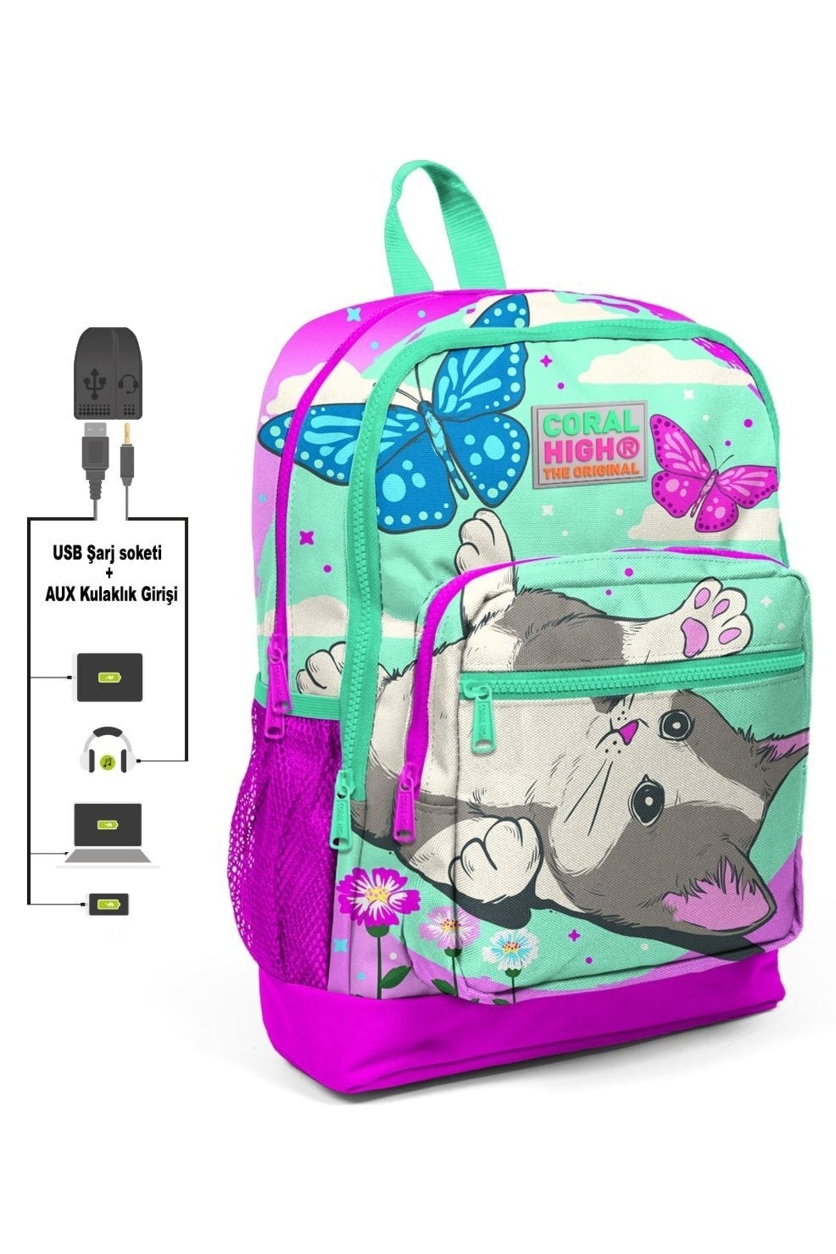 Süßes Katzen- und Schmetterlings-Grundschultaschenset für Mädchen – USB-Ausgang
