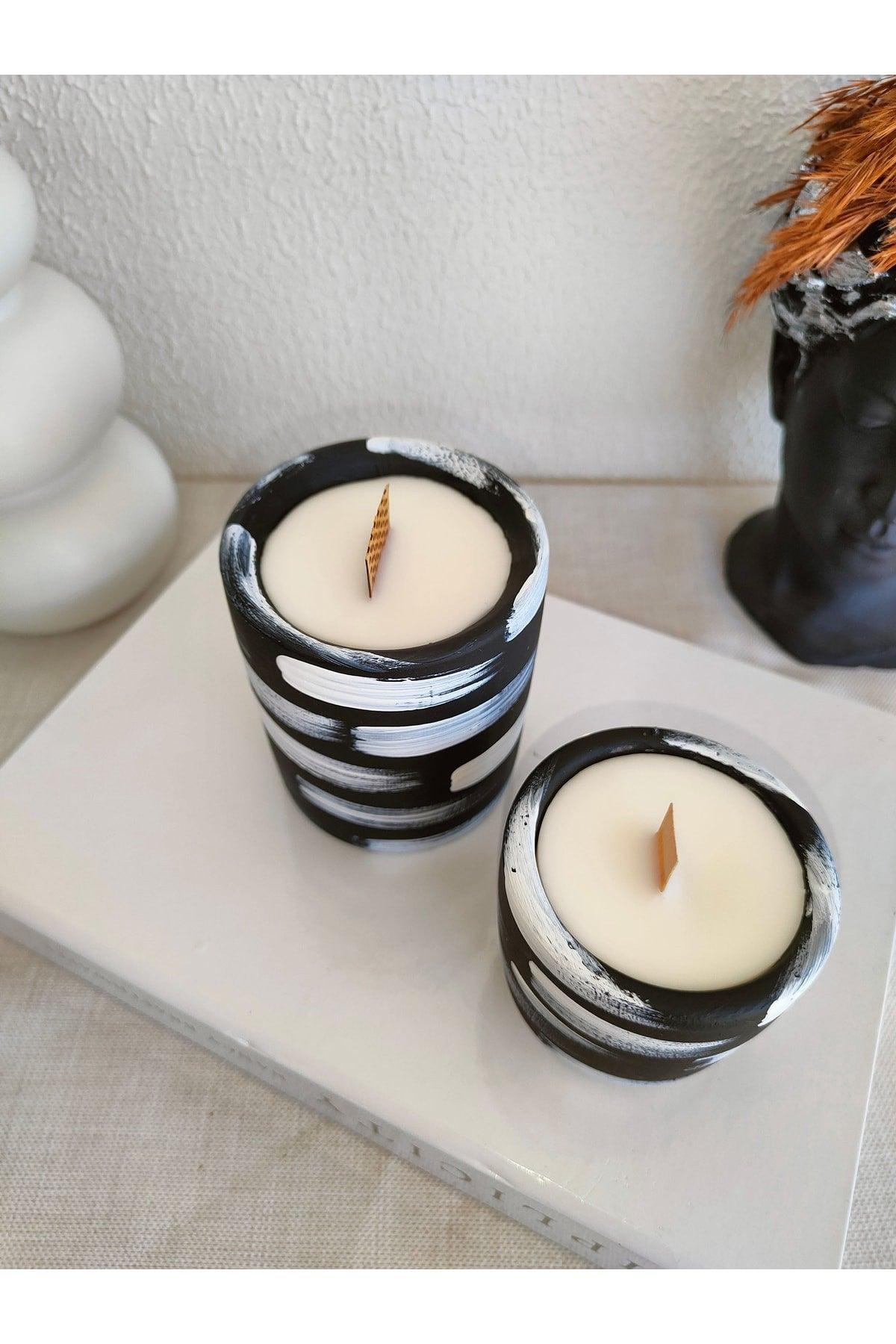 Decorative 100% Soy Wax Sandal & Amber Scented Bamboo Wick Aromatherapy Candle Black and White Set of 2 - Swordslife