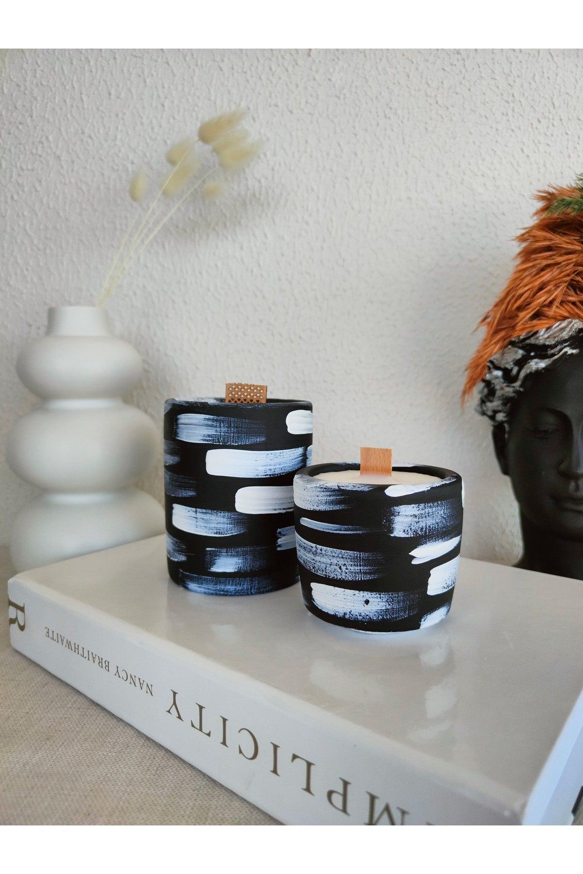 Dekorative 100% Soja Wachs Sandale & bernsteinduft Bambus -Docht Aromatherapie Kerze Schwarz -Weiß -Set von 2