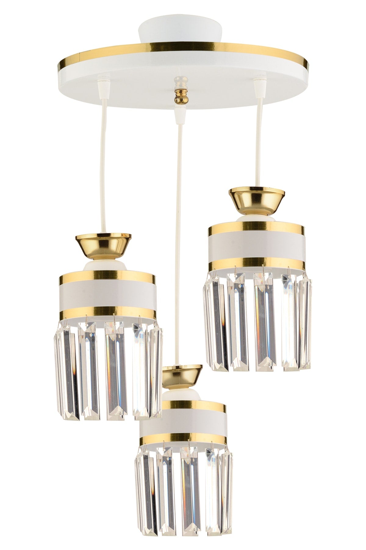 3-teilige Pendelleuchte Kristall Stein Tablett Weiß Gelb Vergoldet Modern Luxus Kronleuchter