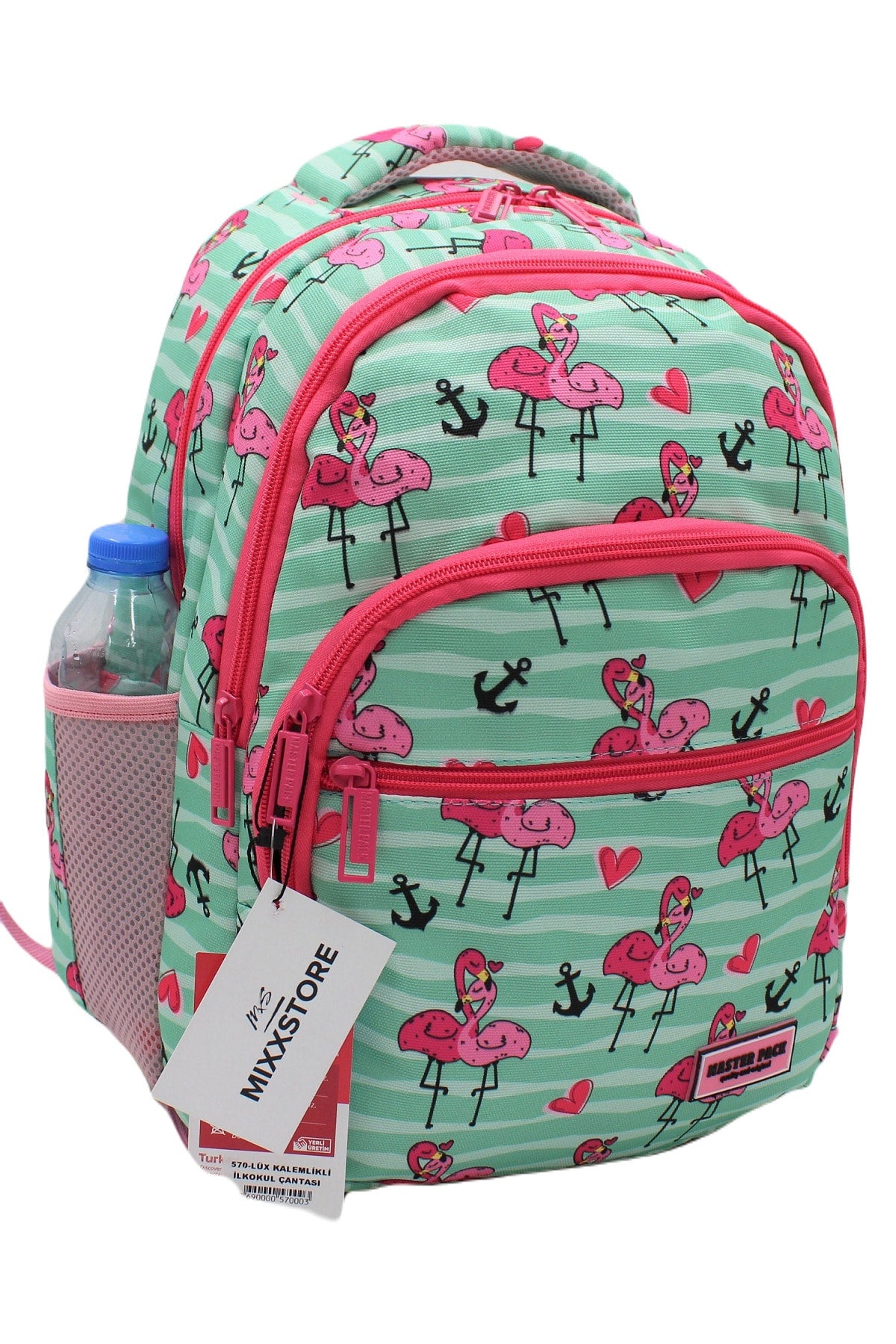 Flamingo gemusterte grüne Farbe Master Pack Mädchen Rucksack Grundschule Tasche mit Essen und Bleistifthalter