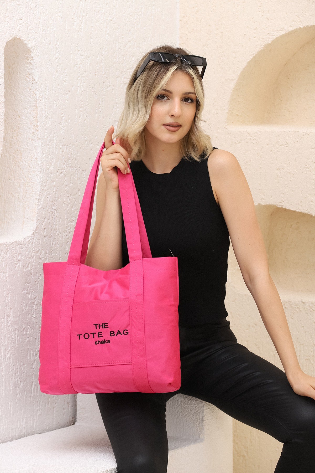 Fuchsia U46 Druckknopfverschluss Vordertasche Detaillierte Tragetasche Bestickte Canvas Damen Arm- und Schultertasche U:30 E