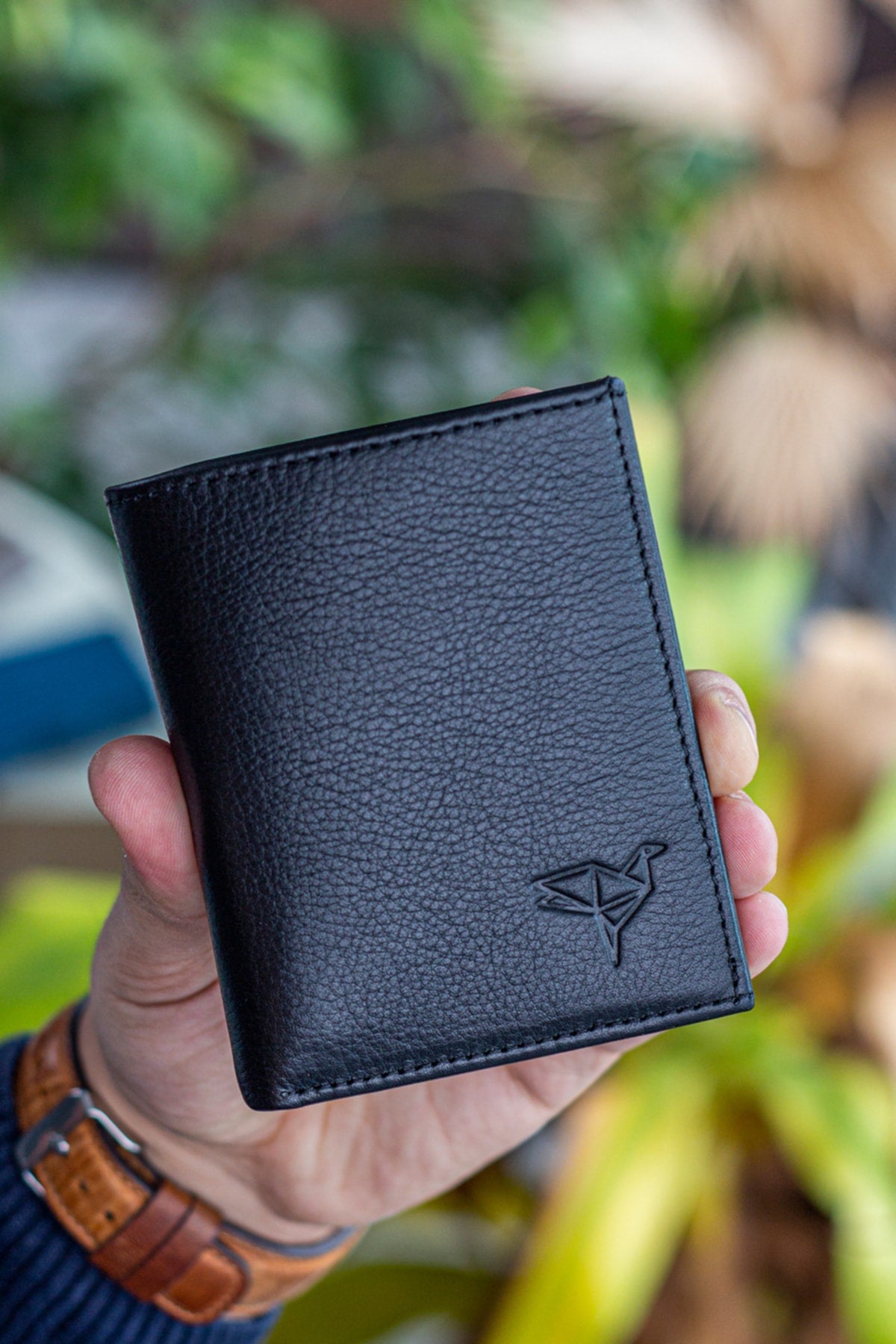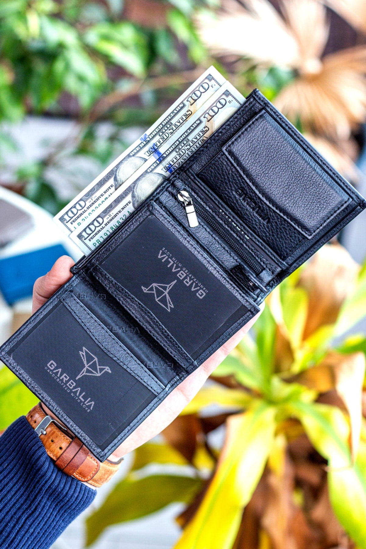 Echtes Leder Schwarze Herren Geldbörse mit Münzfach Jcksn101
