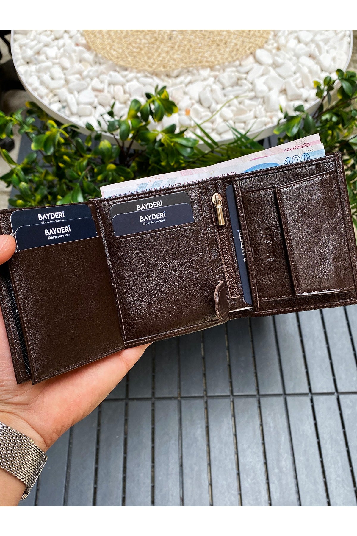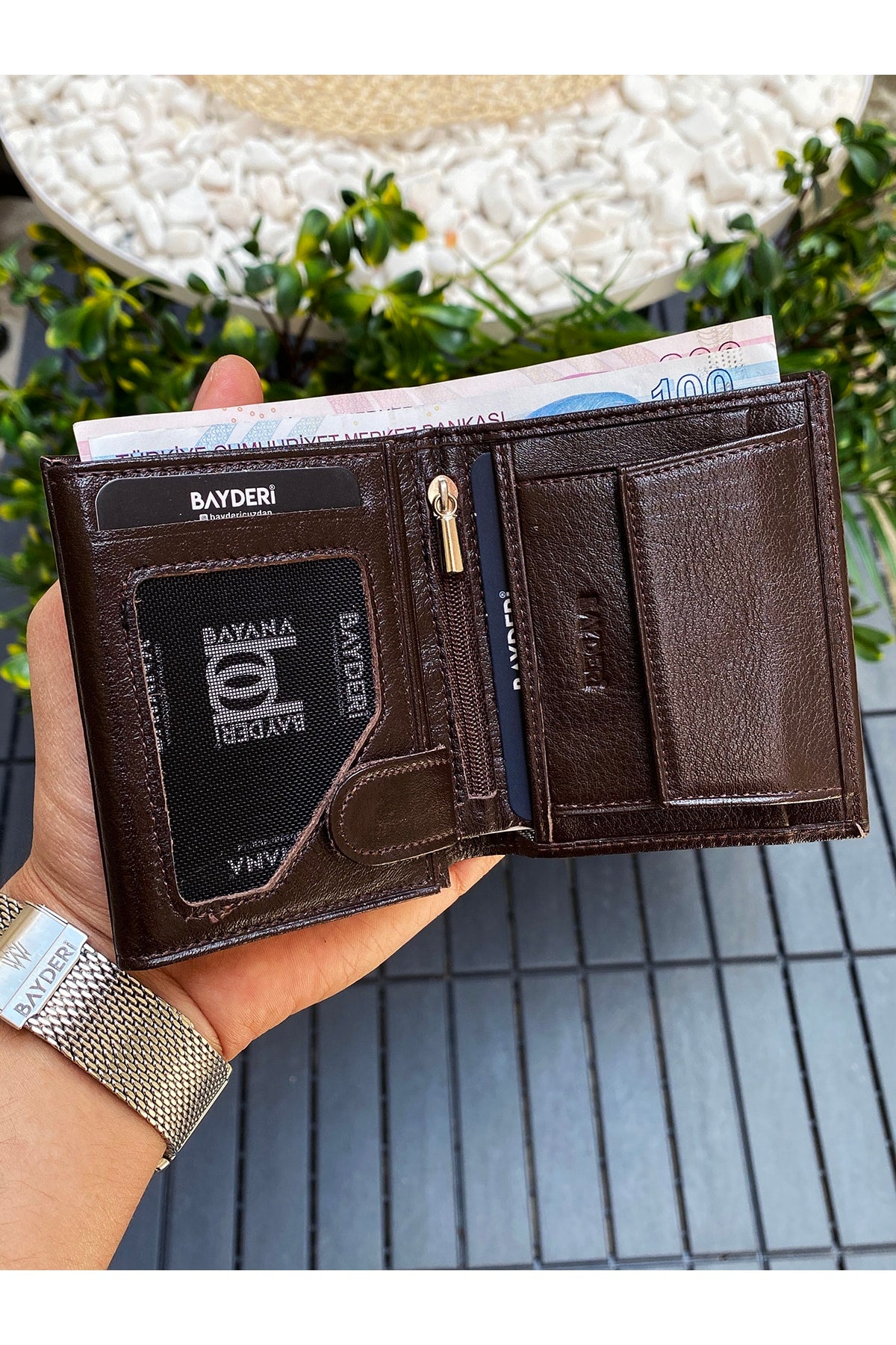 Echtes Leder Handliche Braune Herren Geldbörse Mit Münzfach