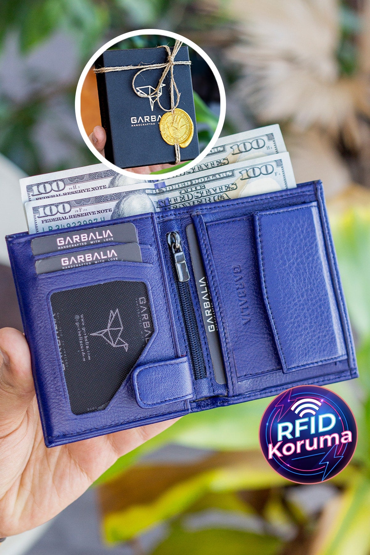 Herren-Geldbörse aus echtem Leder in Marineblau mit Münzöffnung Jcksn101