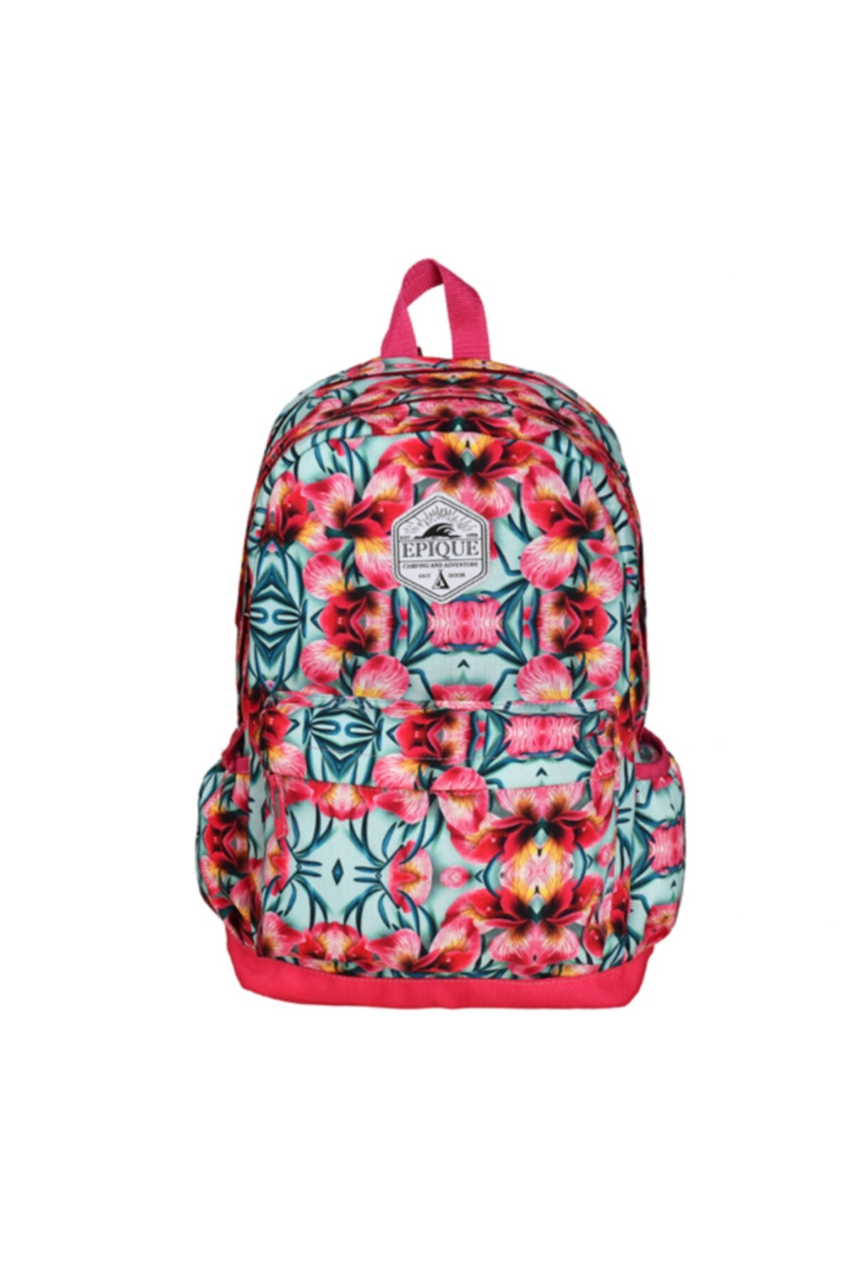 Schul- und Alltagsrucksack mit drei Fächern und Blumenmuster für Mädchen in Dunkelrosa
