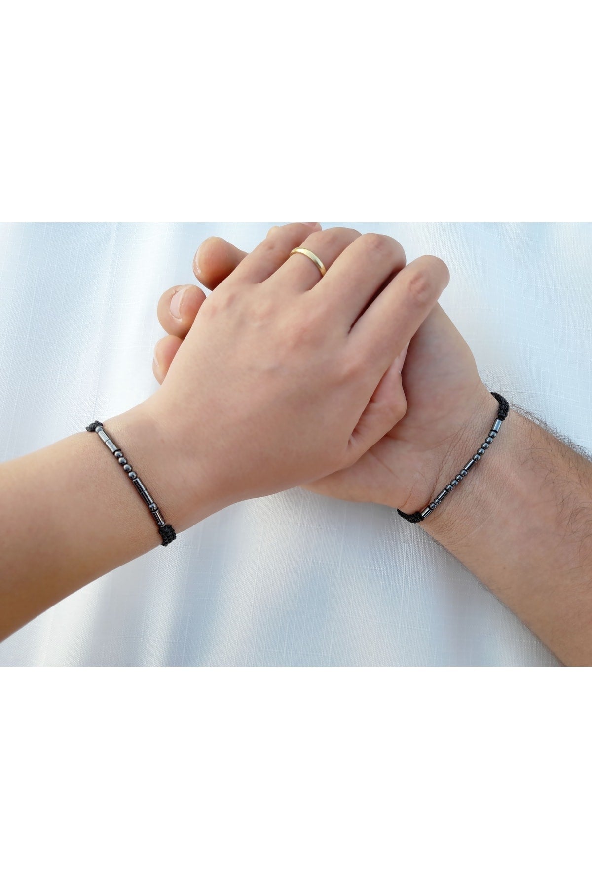 Hämatit Naturstein Morsecode Armband Paar Armband Liebhaber Armband Geschenk