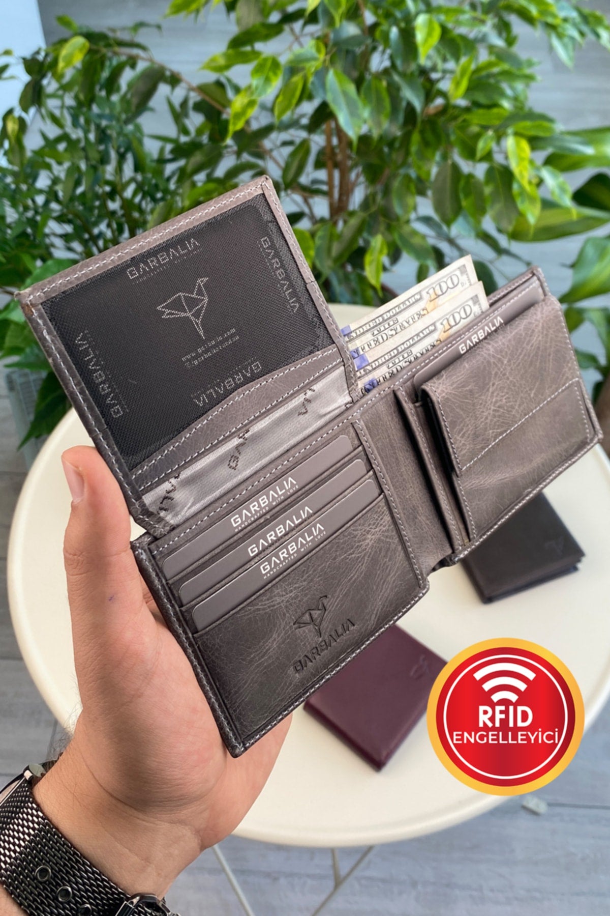 Jackson Echtleder Geldbörse mit Münzloch und RFID-Blocker, Grau