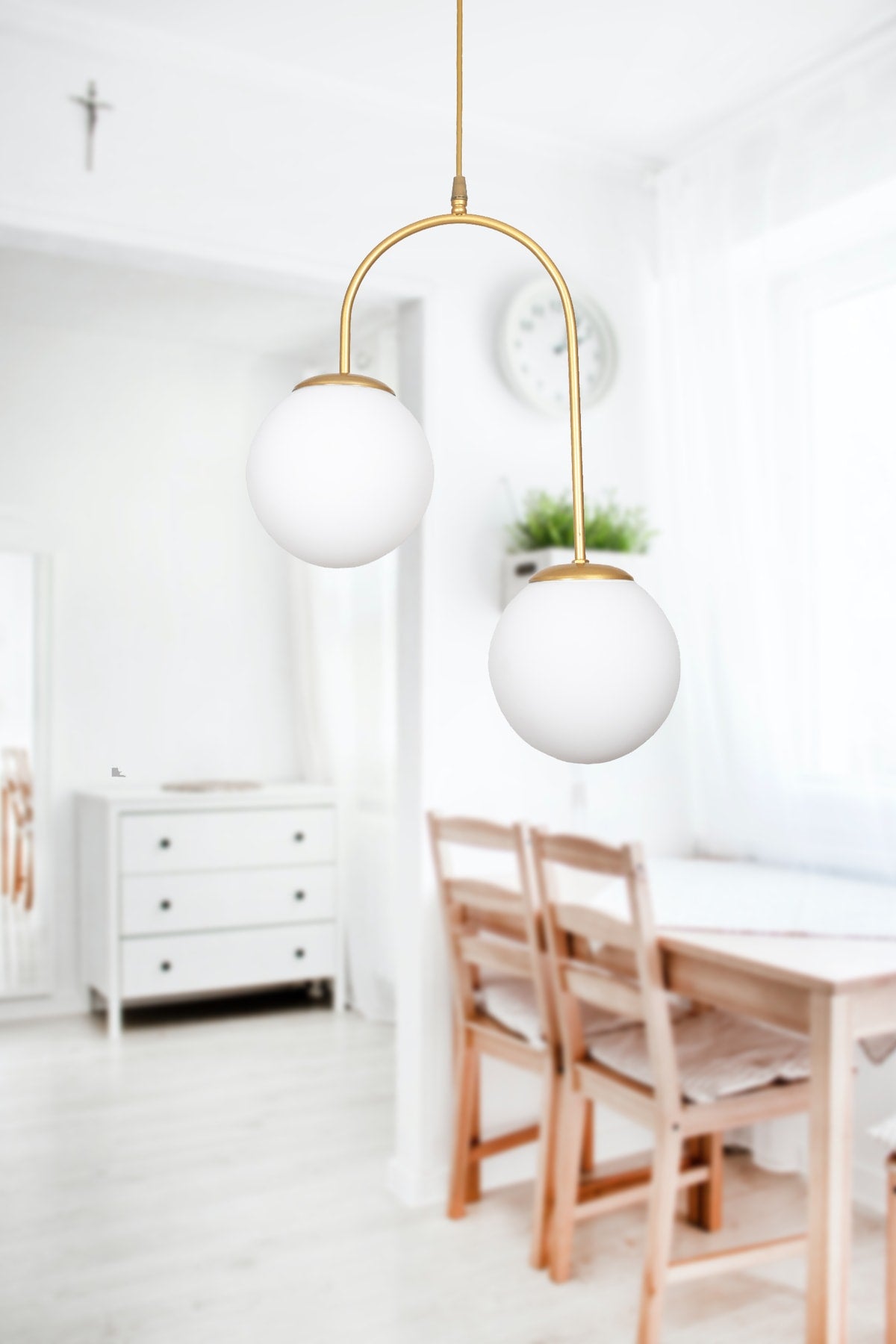 Janin Moderne Pendelleuchte, Antik-Farbkörper, weißes Glas, Wohnzimmer, Küche, Schlafzimmer, 2-teiliger Kronleuchter