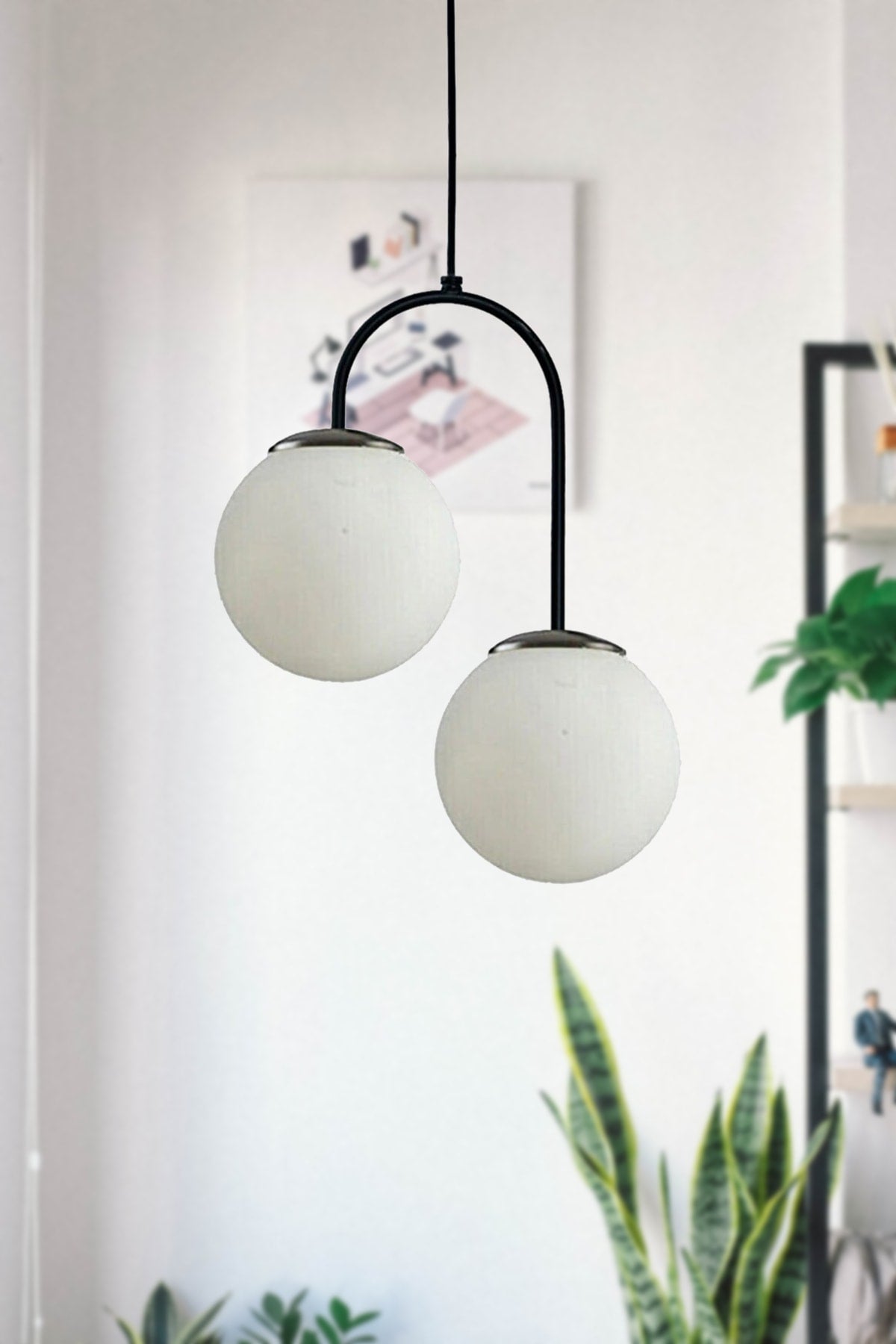 Janin Moderne Pendelleuchte Schwarz Farbe Körper Weiß Glas Wohnzimmer - Küche - Schlafzimmer 2 Stück Kronleuchter