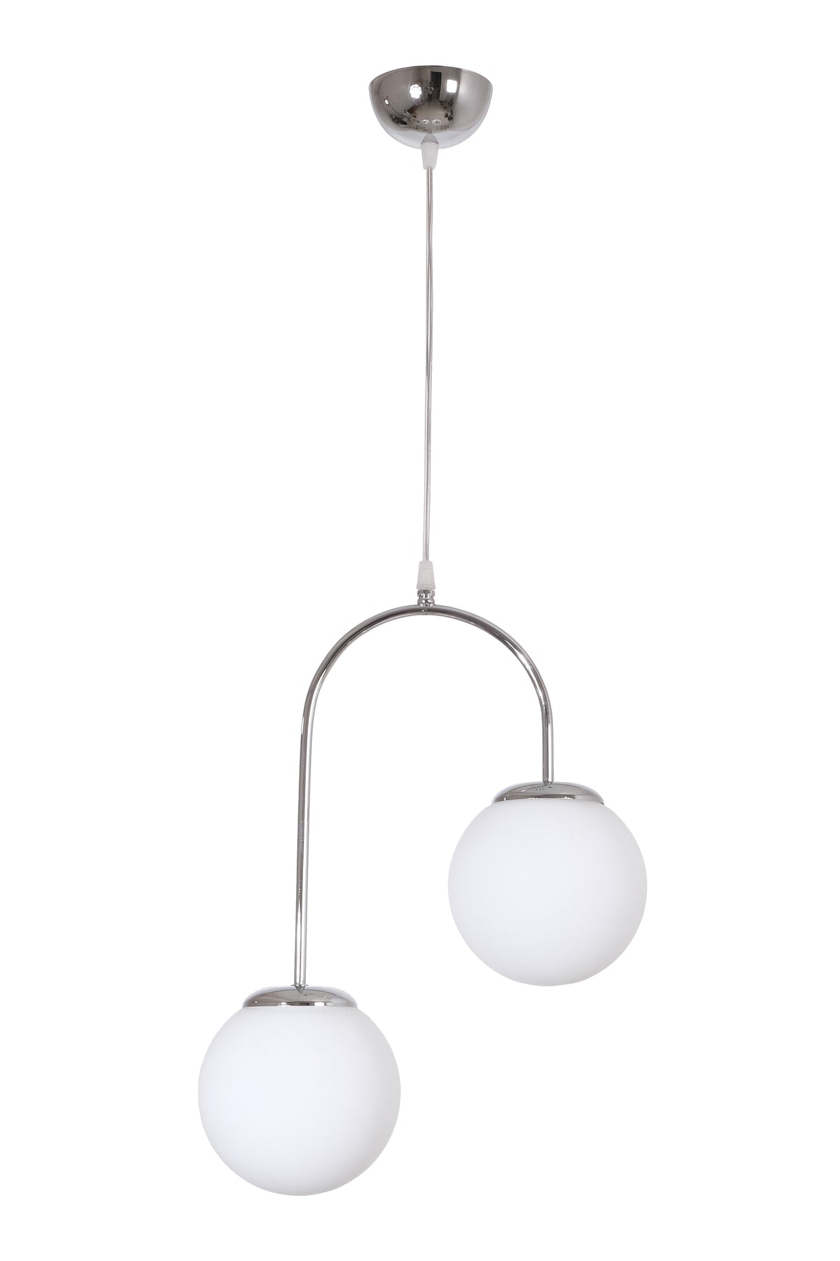 Janin Moderne Pendelleuchte Chrom Farbe Körper Weiß Glas Wohnzimmer - Küche - Schlafzimmer 2 Stück Kronleuchter