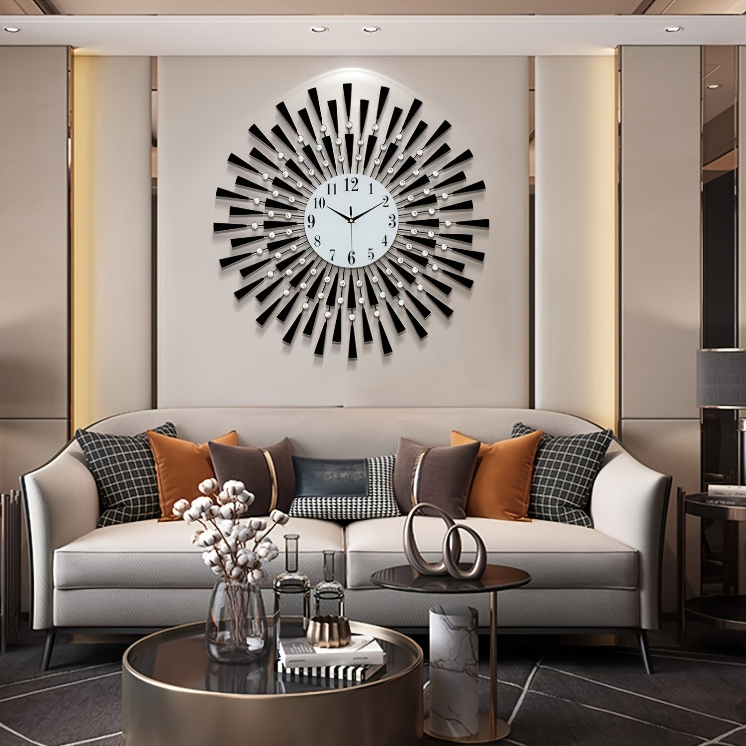 large black metal wall clock modern glass dial silent non ticking battery operated ideal for living room bedroom office
