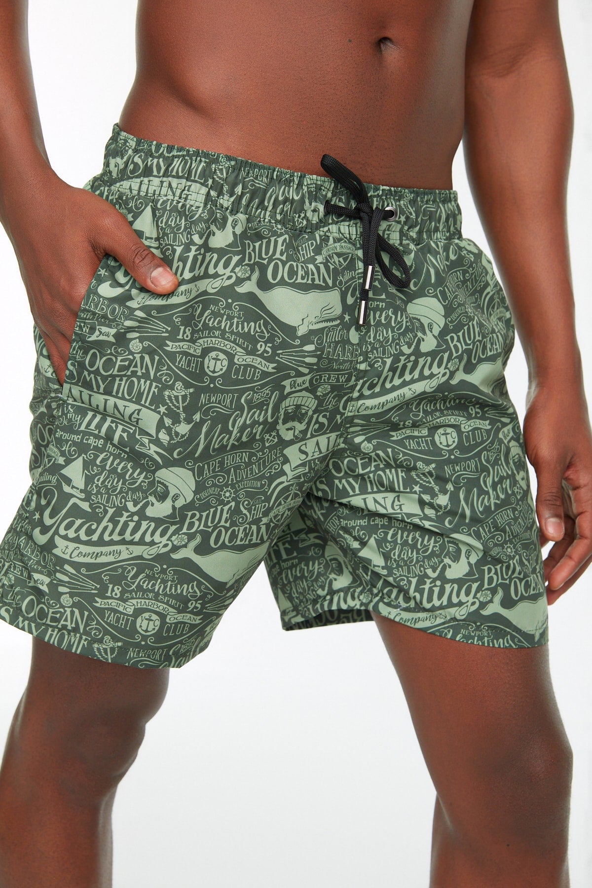 Khakifarbene Badeshorts mit Textaufdruck in Standardgröße für Herren Tmnss20Ds0003