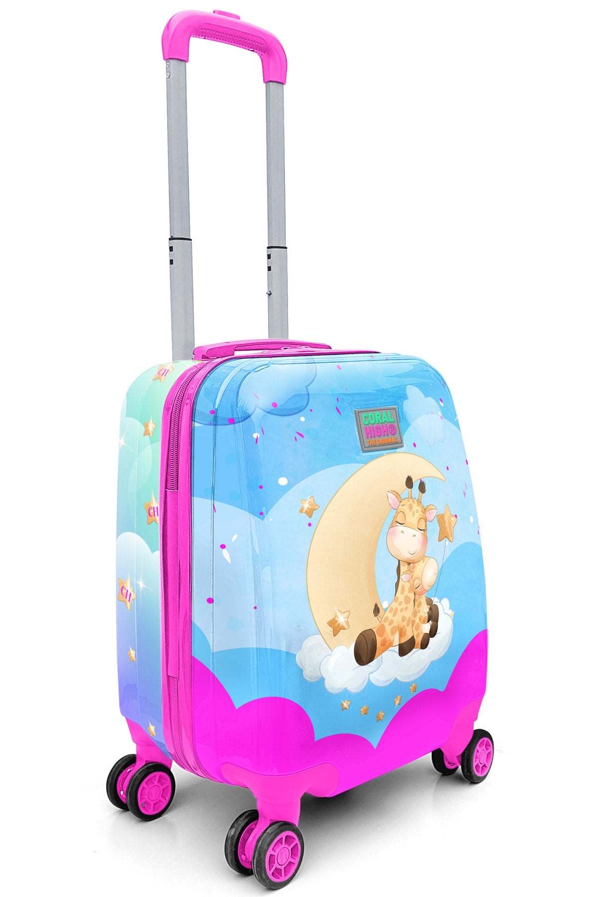 Kinderkoffer mit Giraffenmuster, Blau/Rosa, 16719