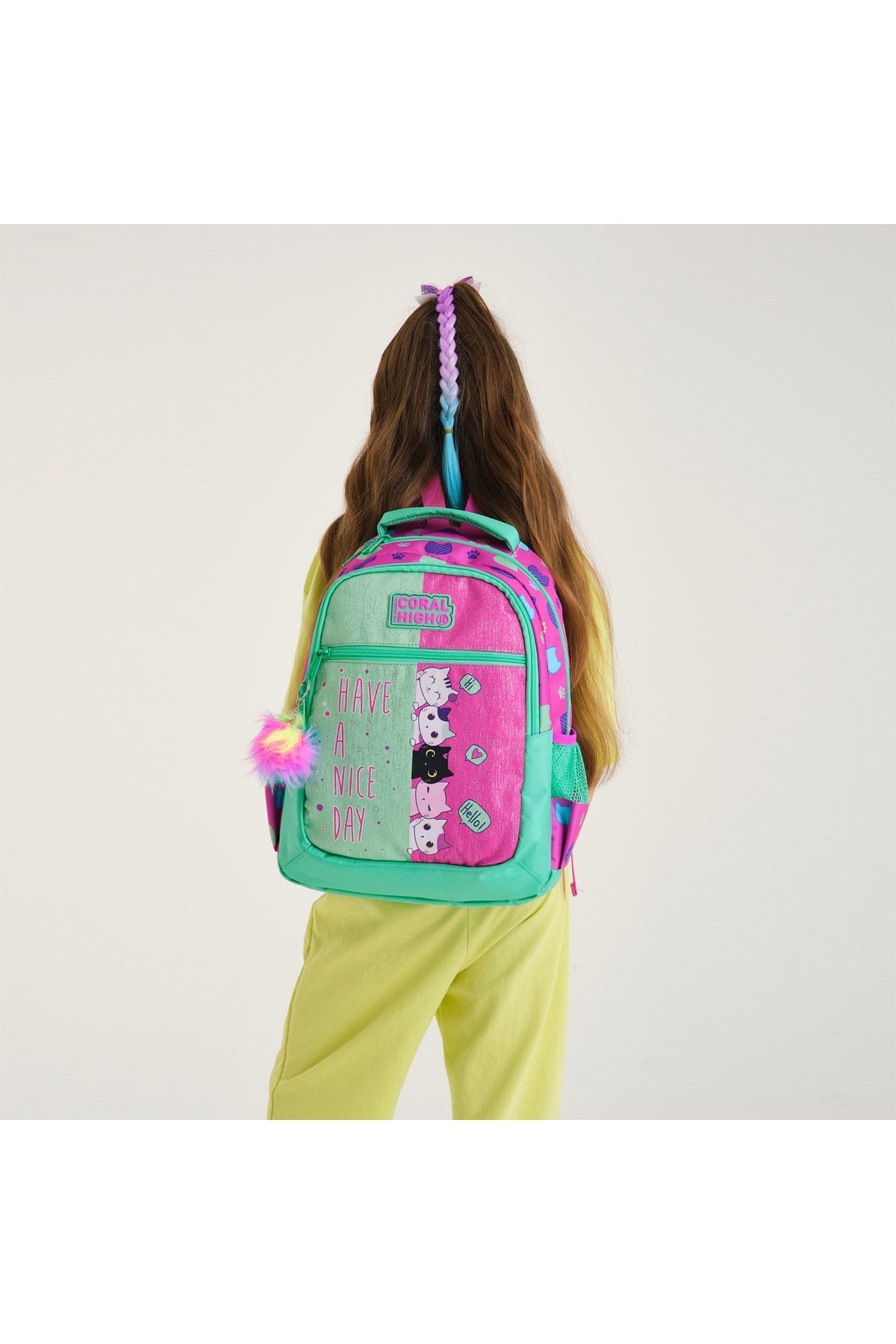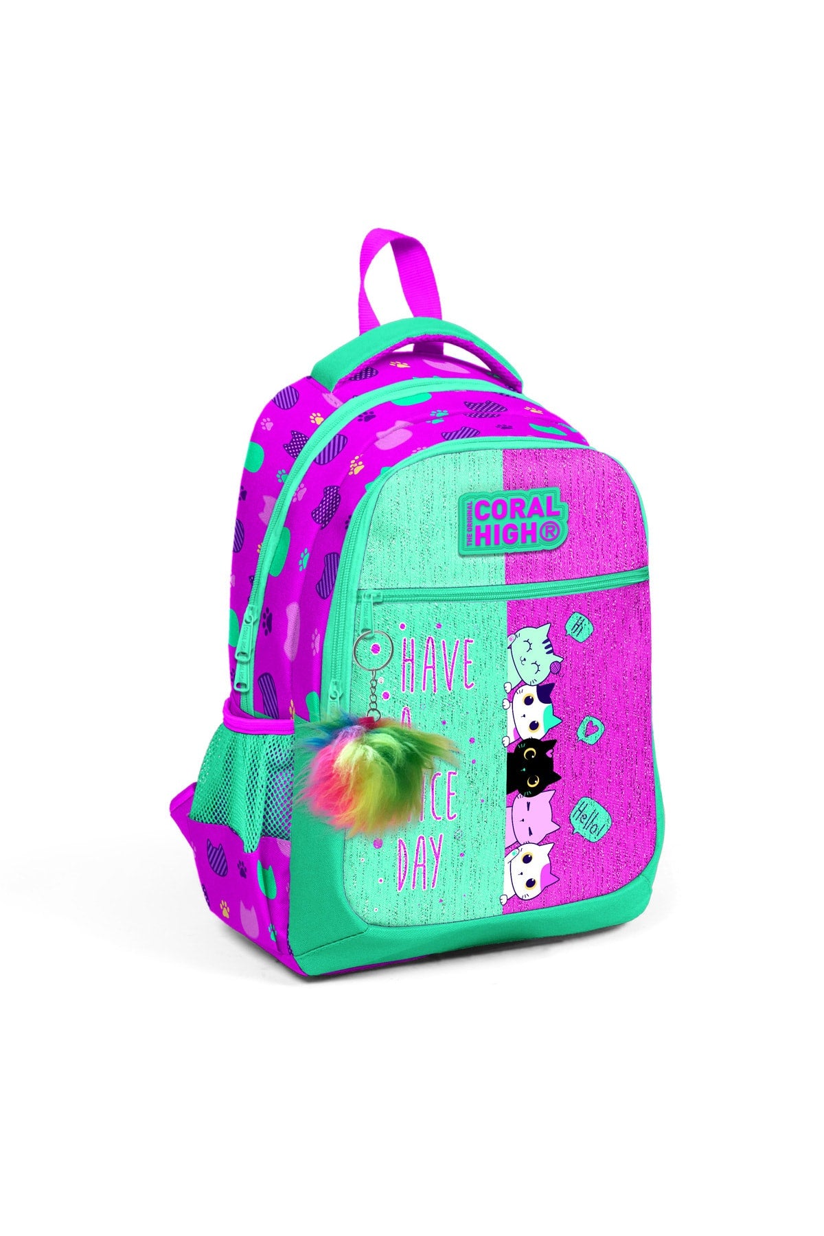 Schulranzen für Kinder in Rosa und Wassergrün mit drei Fächern 23490