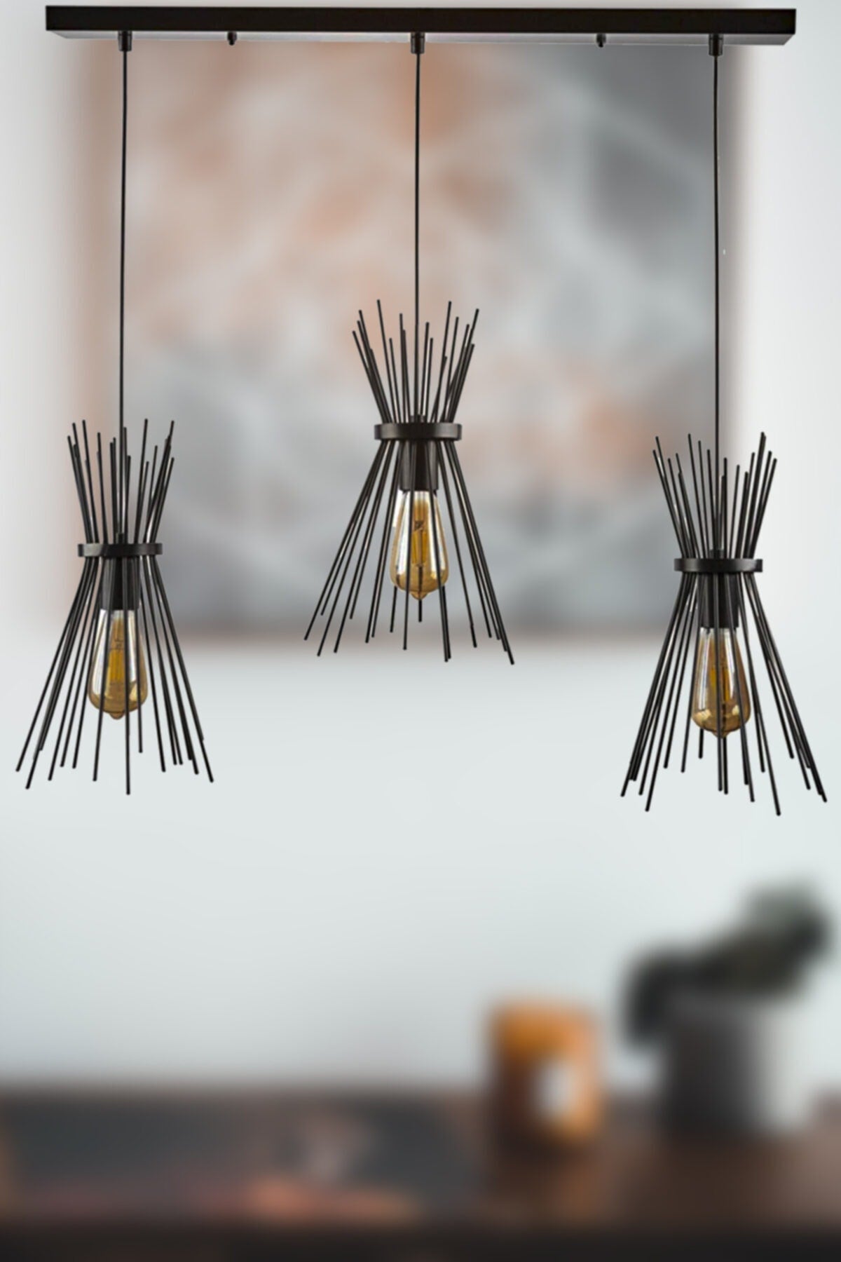 Kirpi Black Row Pendelleuchte Wohnzimmer - Küche 3-teiliger Kronleuchter