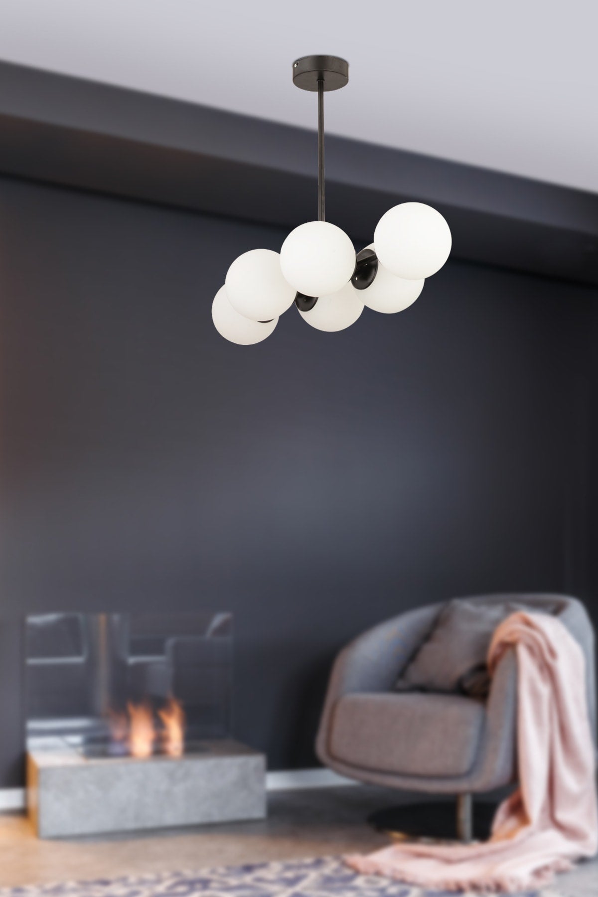 Lema 6-teiliger schwarzer moderner Esstisch über dem Schlafzimmer-Wohnzimmer-Kronleuchter