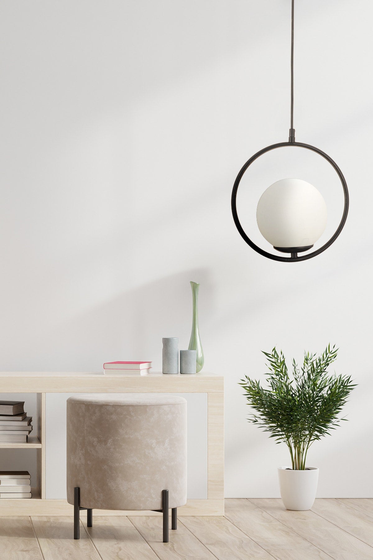 Luis Single Schwarze Pendelleuchte mit weißem Glas Moderne Pendelleuchte Küche Wohnzimmer Pendelleuchte Kronleuchter