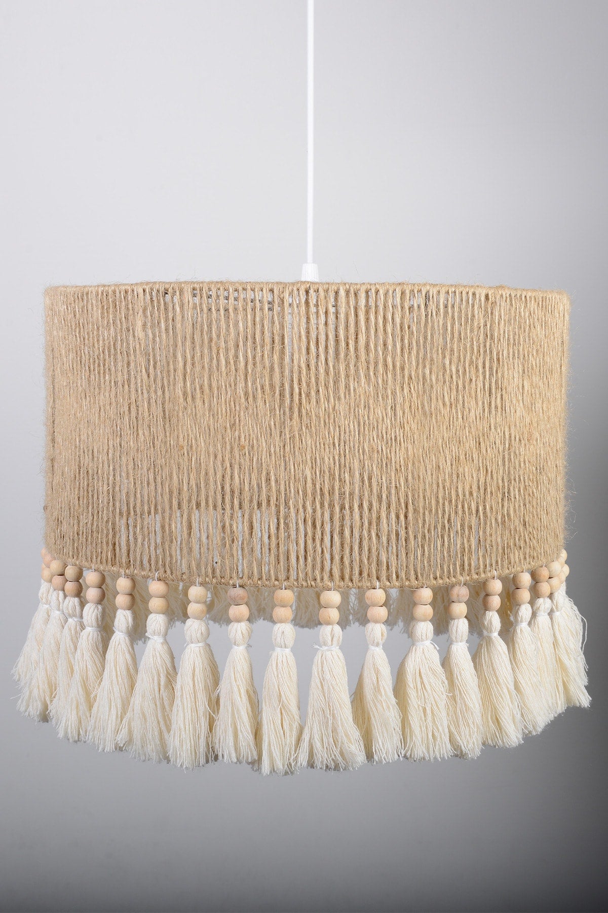 Makramee-Quasten, zweireihig, Holzperlen, Juteseil, Bohemian-Stil, handgefertigt, rustikal, natürliche Beleuchtung, Kronleuchter, Modell 10