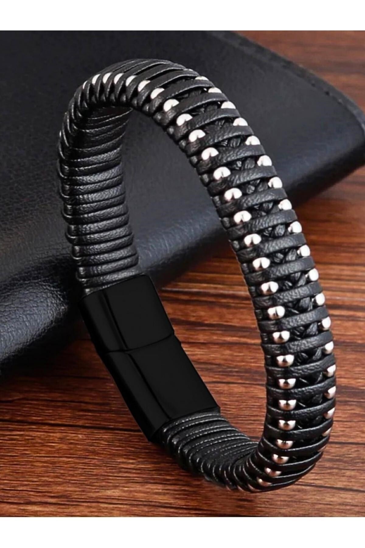Magnetisches Hämatit-Stein-Herren-Lederarmband