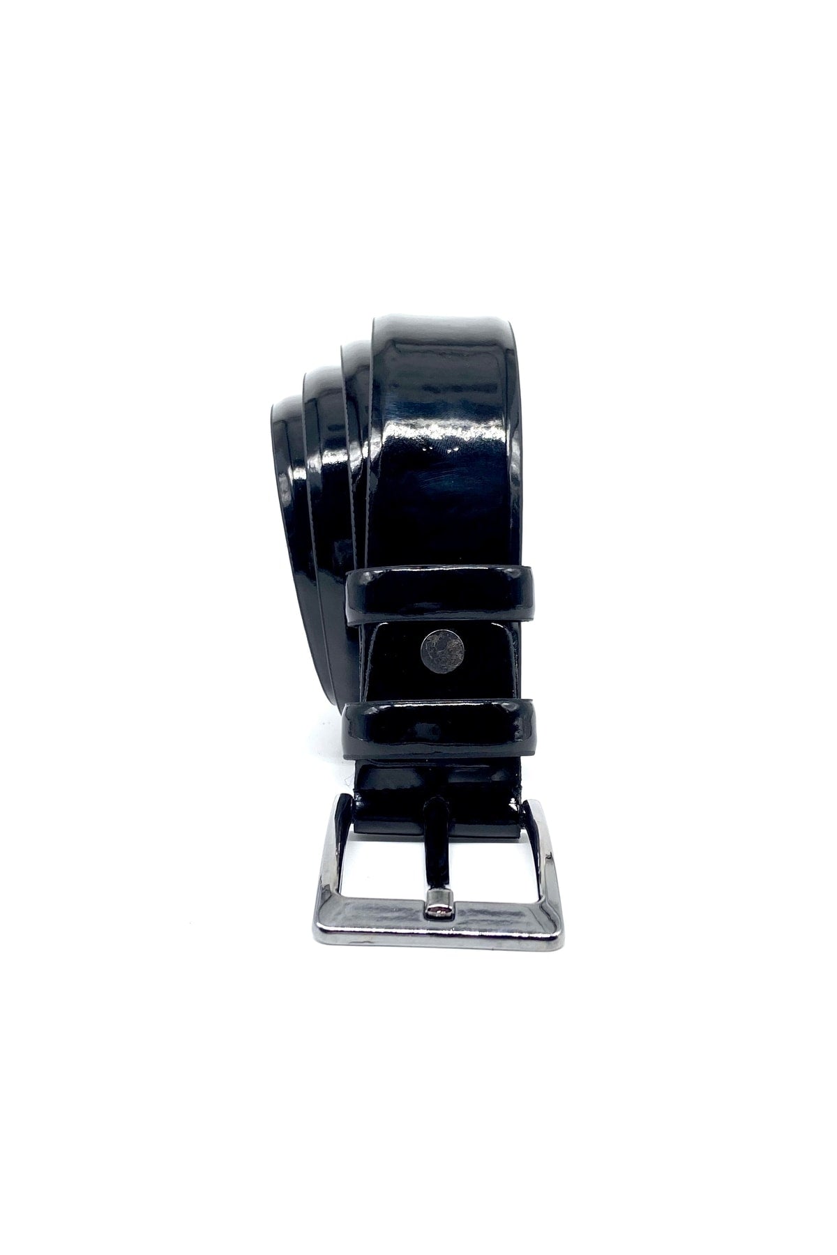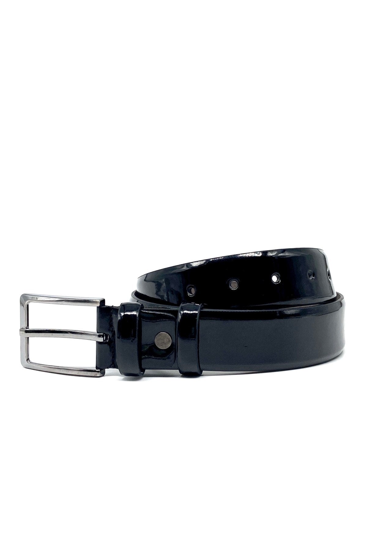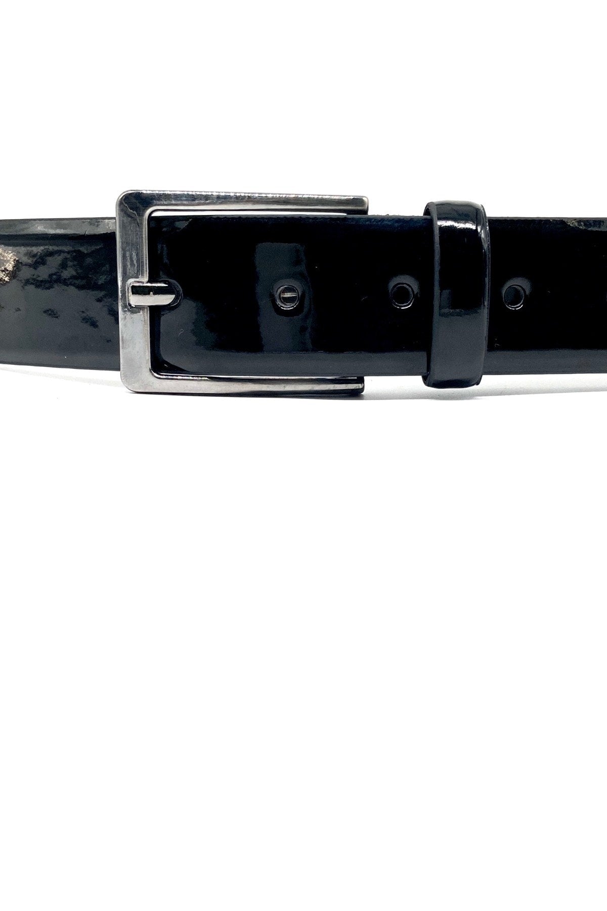 Schwarzer, klassischer gemusterter Lackledergürtel für Herren