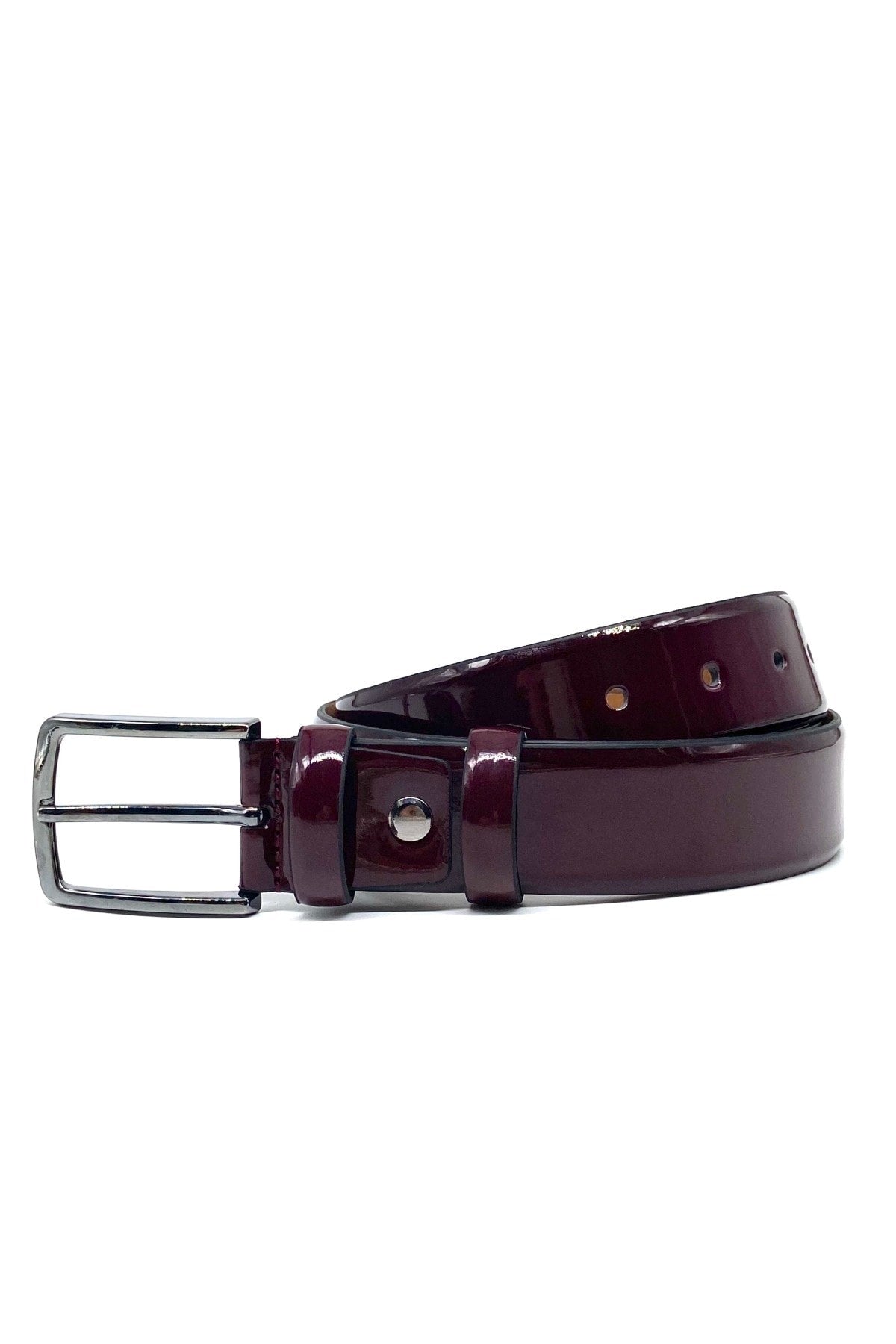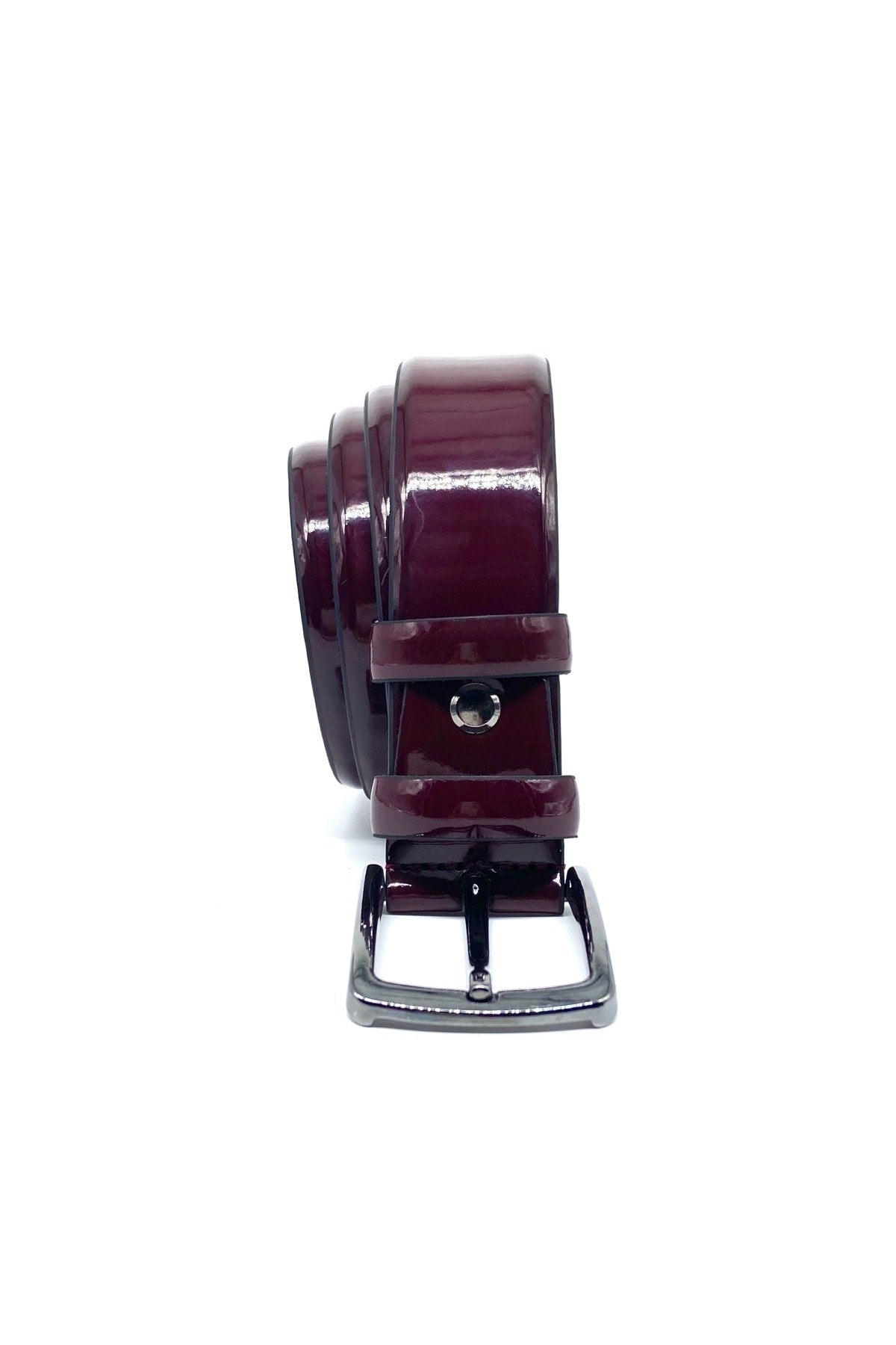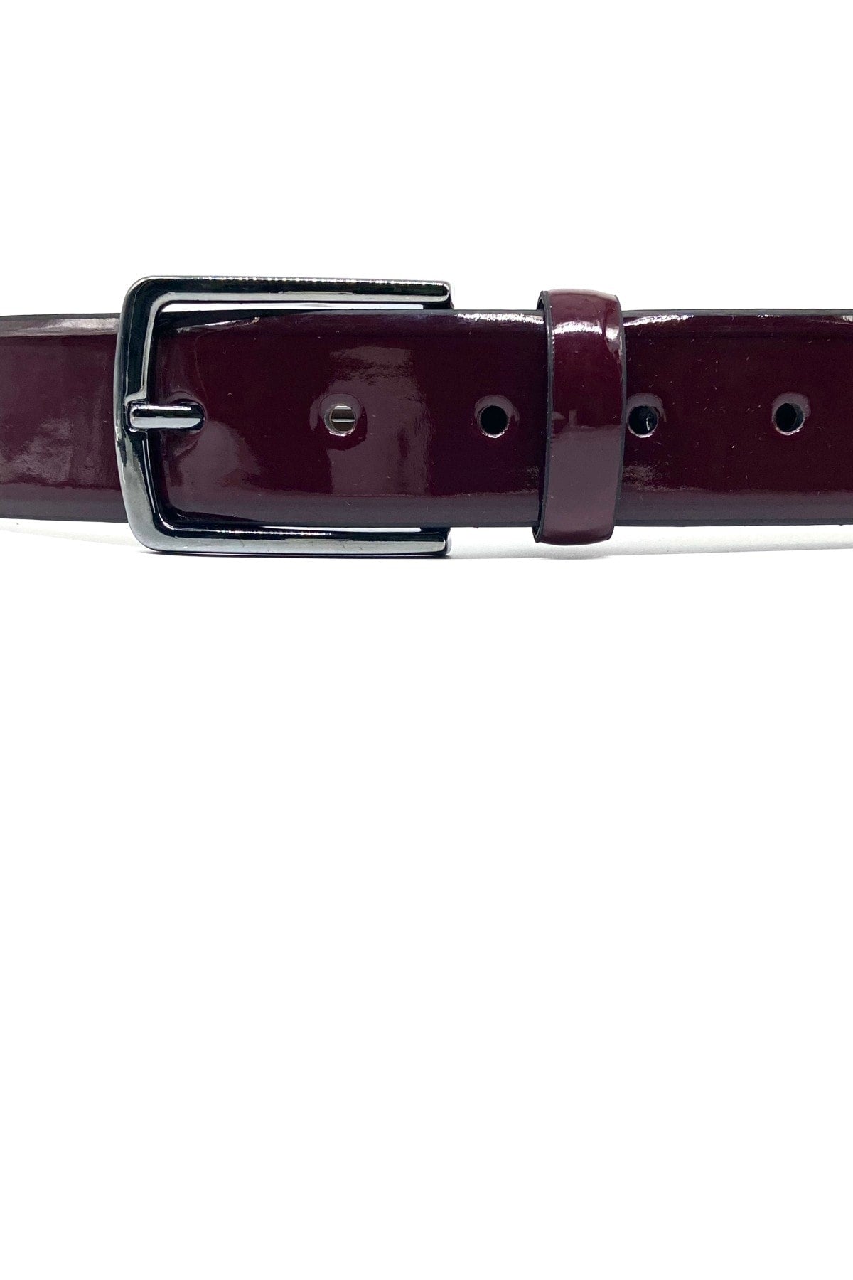 Weinroter, klassisch gemusterter Lackledergürtel für Herren