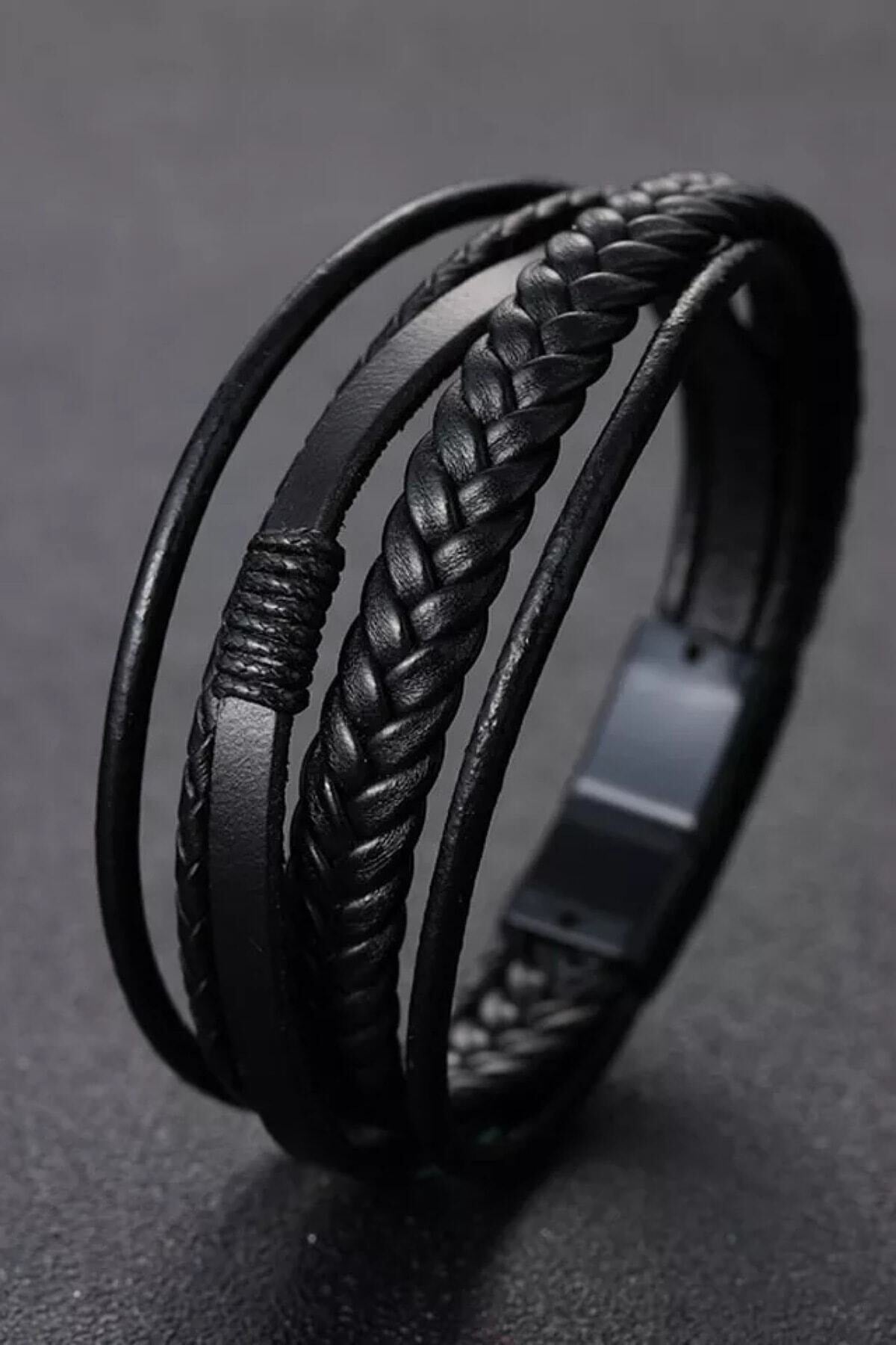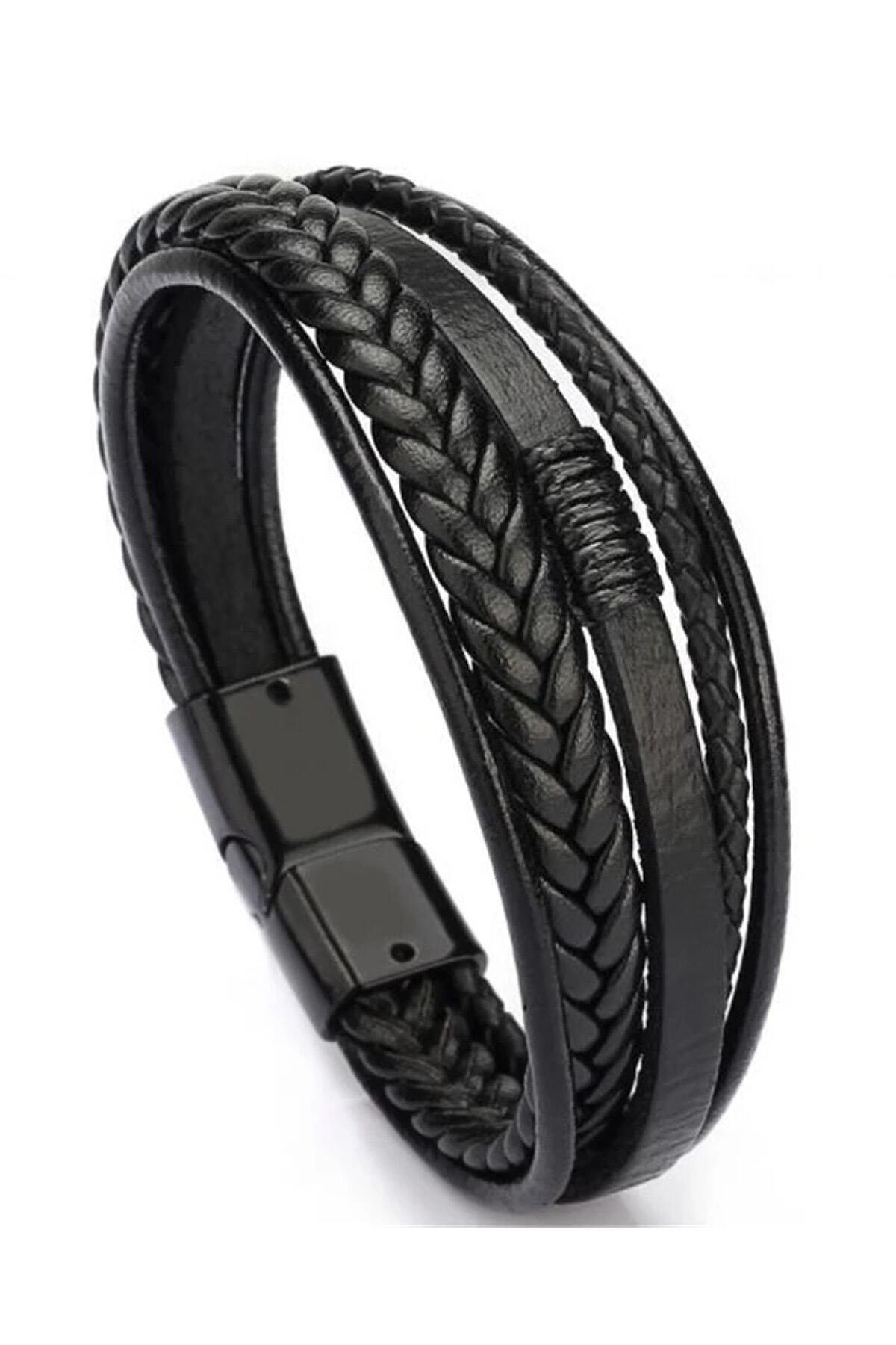 Herren Echtlederarmband Schwarz Farbe Magnetverschluss Geflochtenes Armband