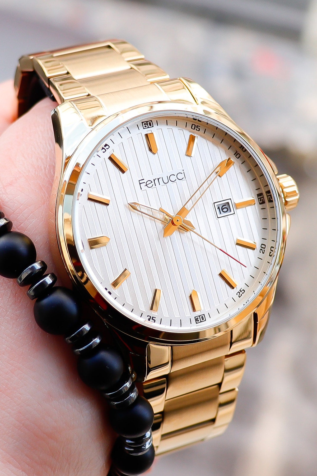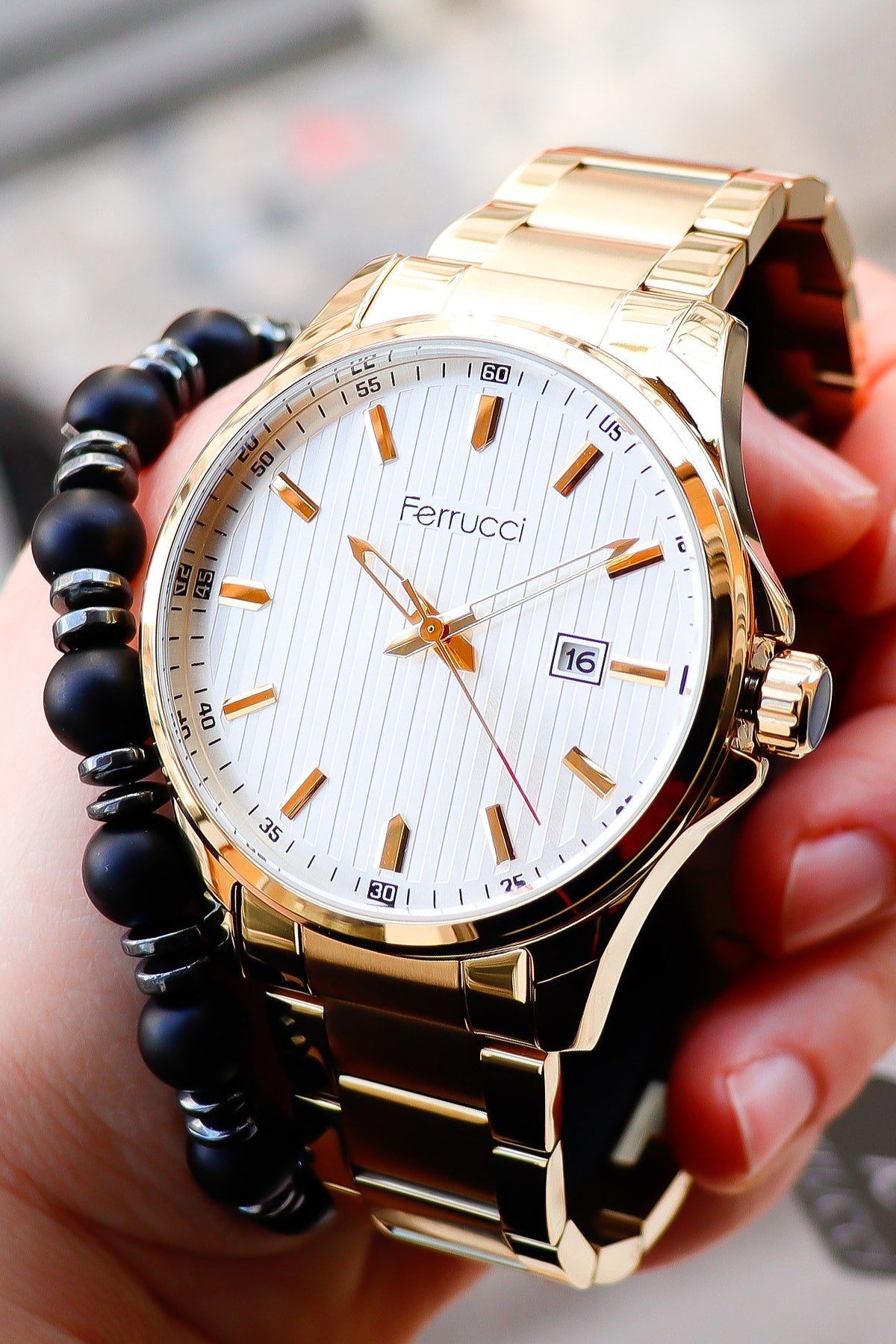 Herren-Armbanduhr mit Kalender und Stahlarmband, goldfarben, 178052