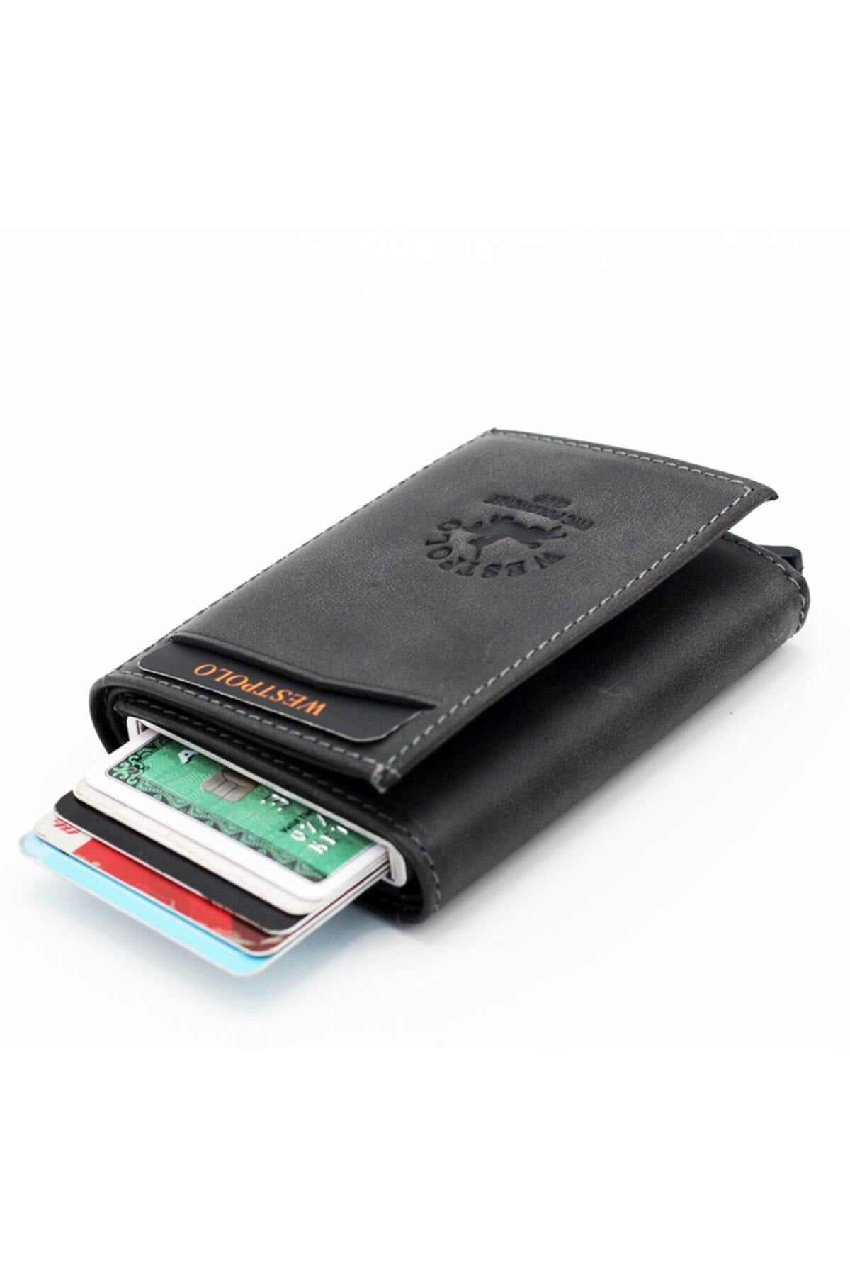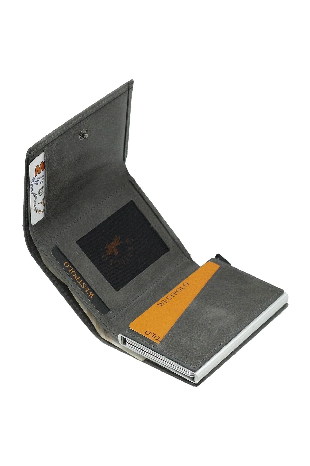 Herren-Geldbörse mit Kartenhalter aus echtem Leder in Grau