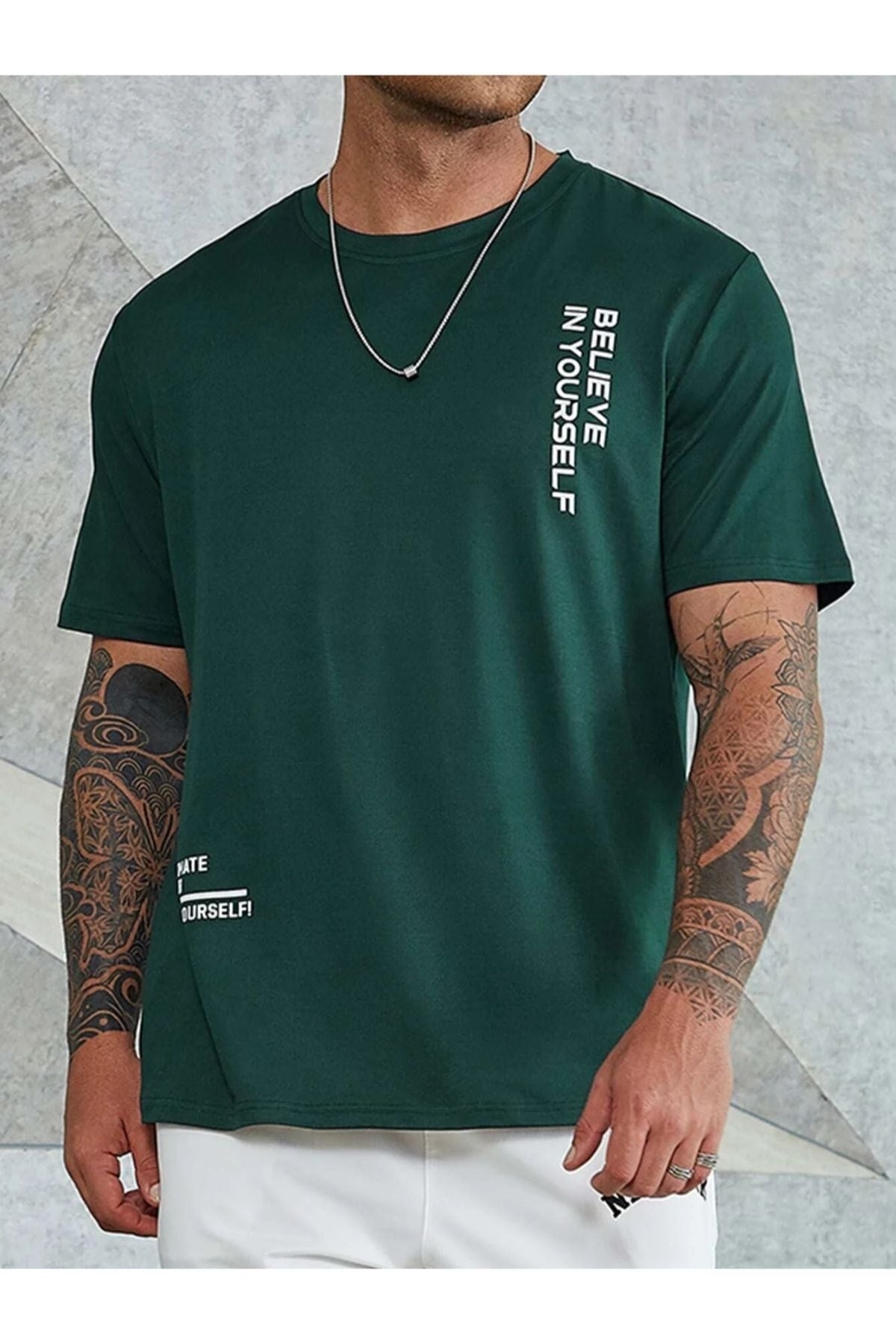 Grünes Oversize-T-Shirt mit „Believe“-Print für Herren