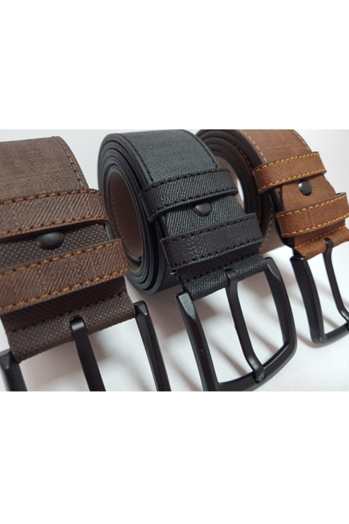 Herren Ledergürtel passend für Jeans und Canvas 3-teilig Schwarz Braun Marineblau genäht