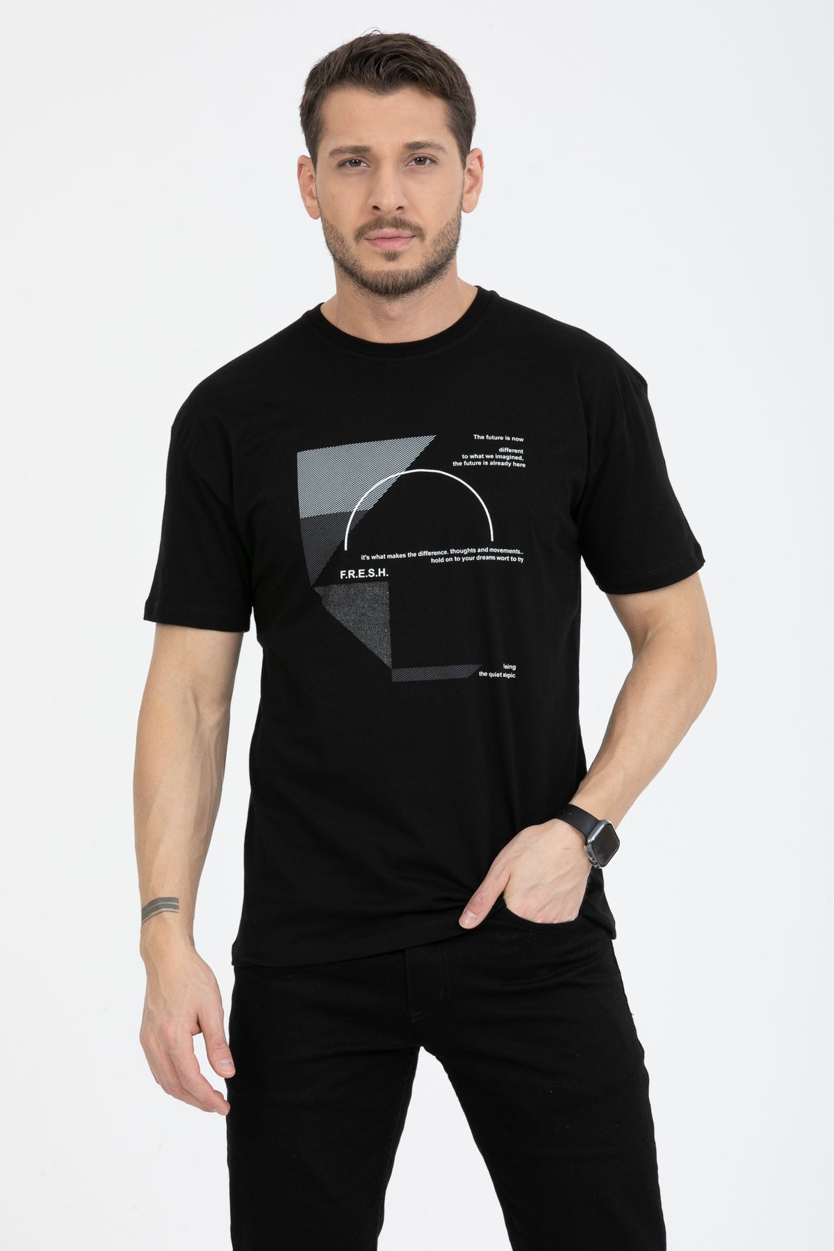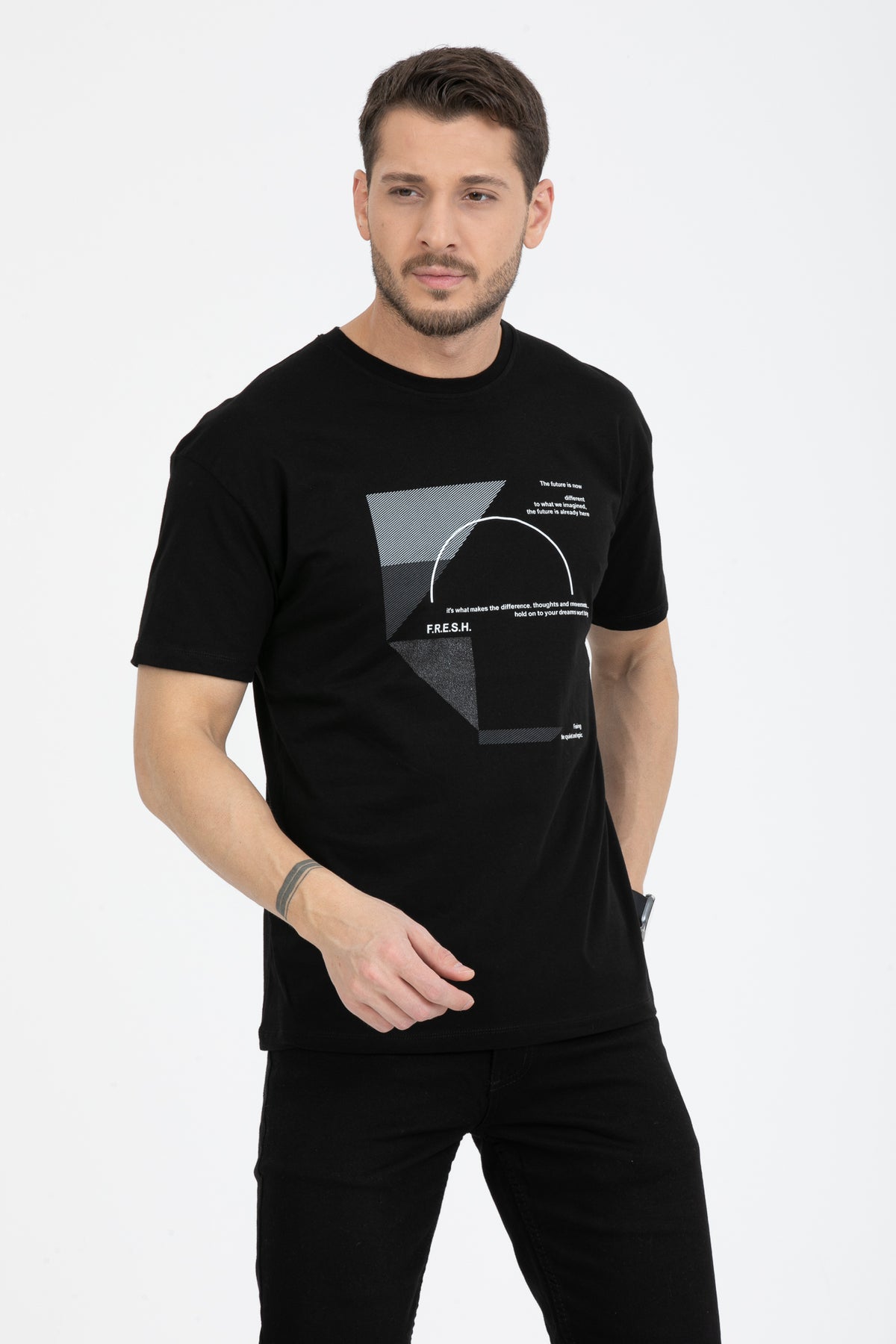 Herren T-Shirt mit Print Regular Fit Schwarz