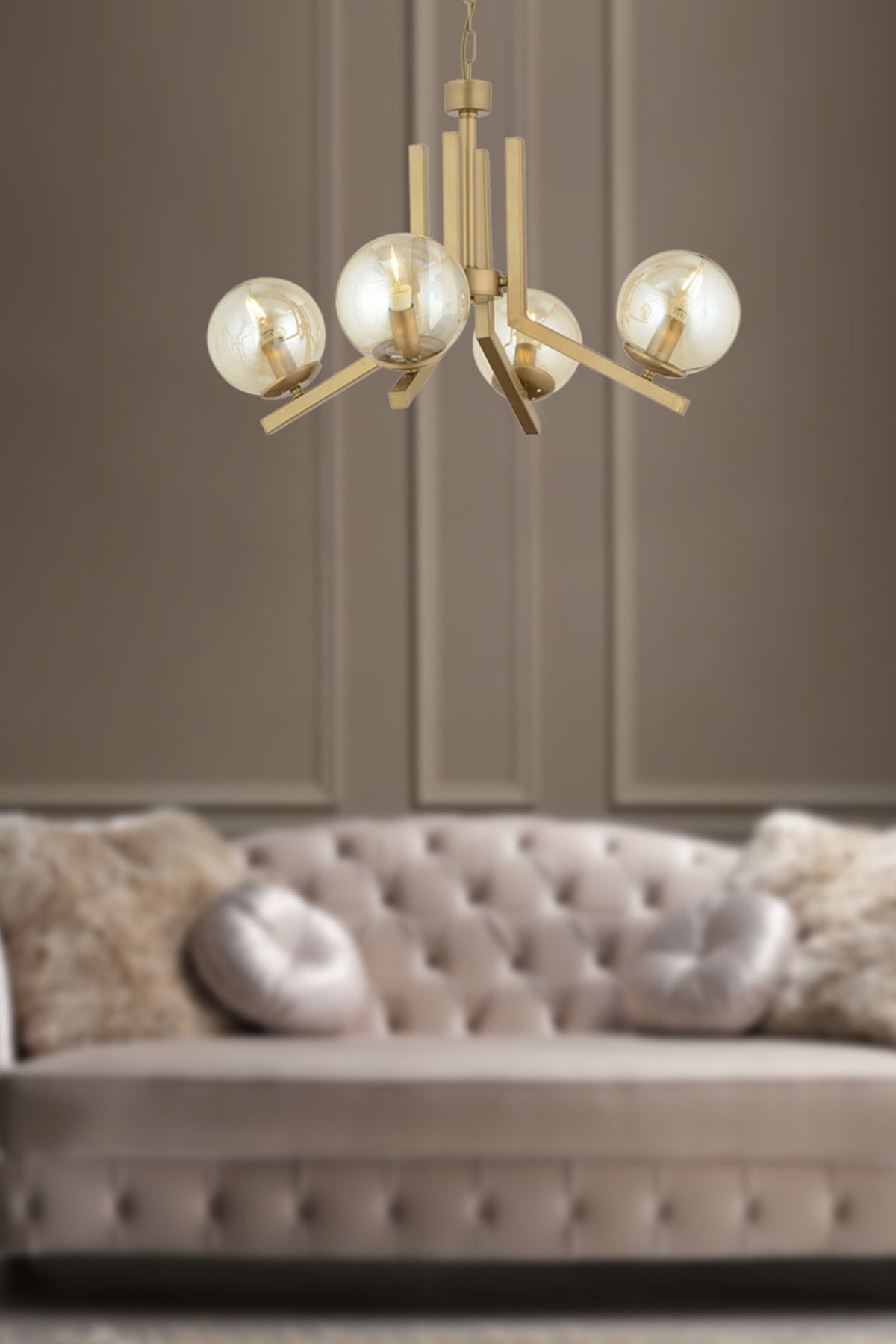 Kronleuchter Mikel, 4-teilig, antik, bemalt, Honigglas, modern, für junges Zimmer, Schlafzimmer, Wohnzimmer