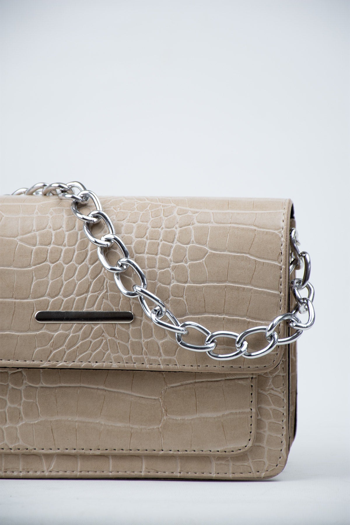 Nerz Damen Clutch Baguette mit Krokodilmuster und Kettenriemen
