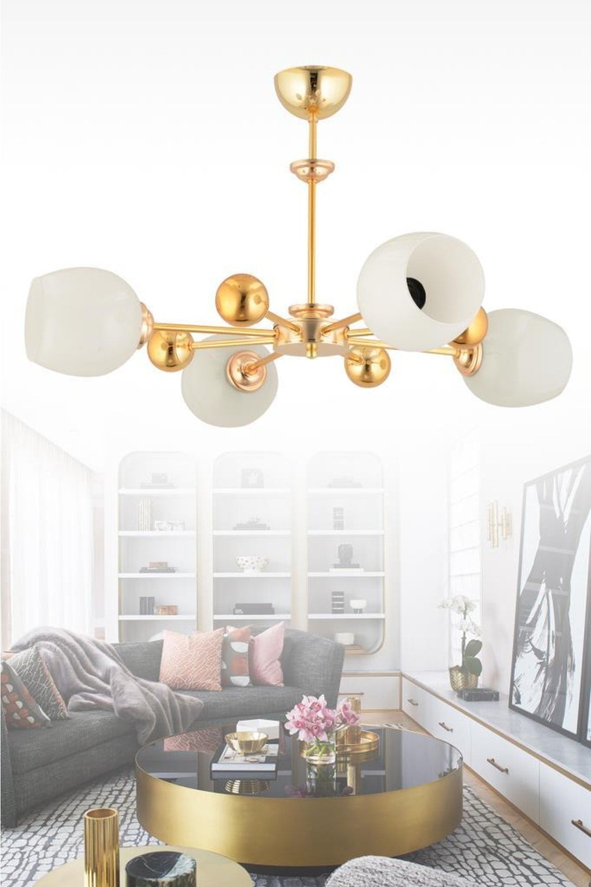 4-teiliger Kronleuchter aus goldweißem Opalglas „Nairobi“