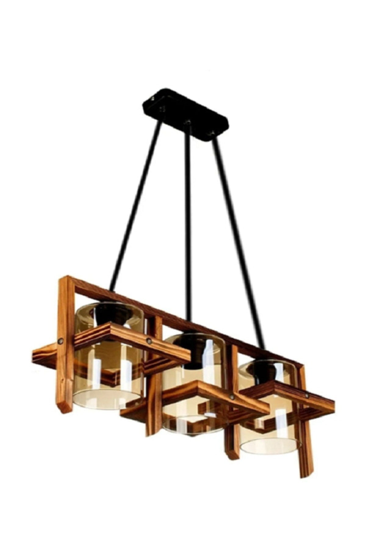 3-teiliger Comfo-Kronleuchter aus natürlichem Holz