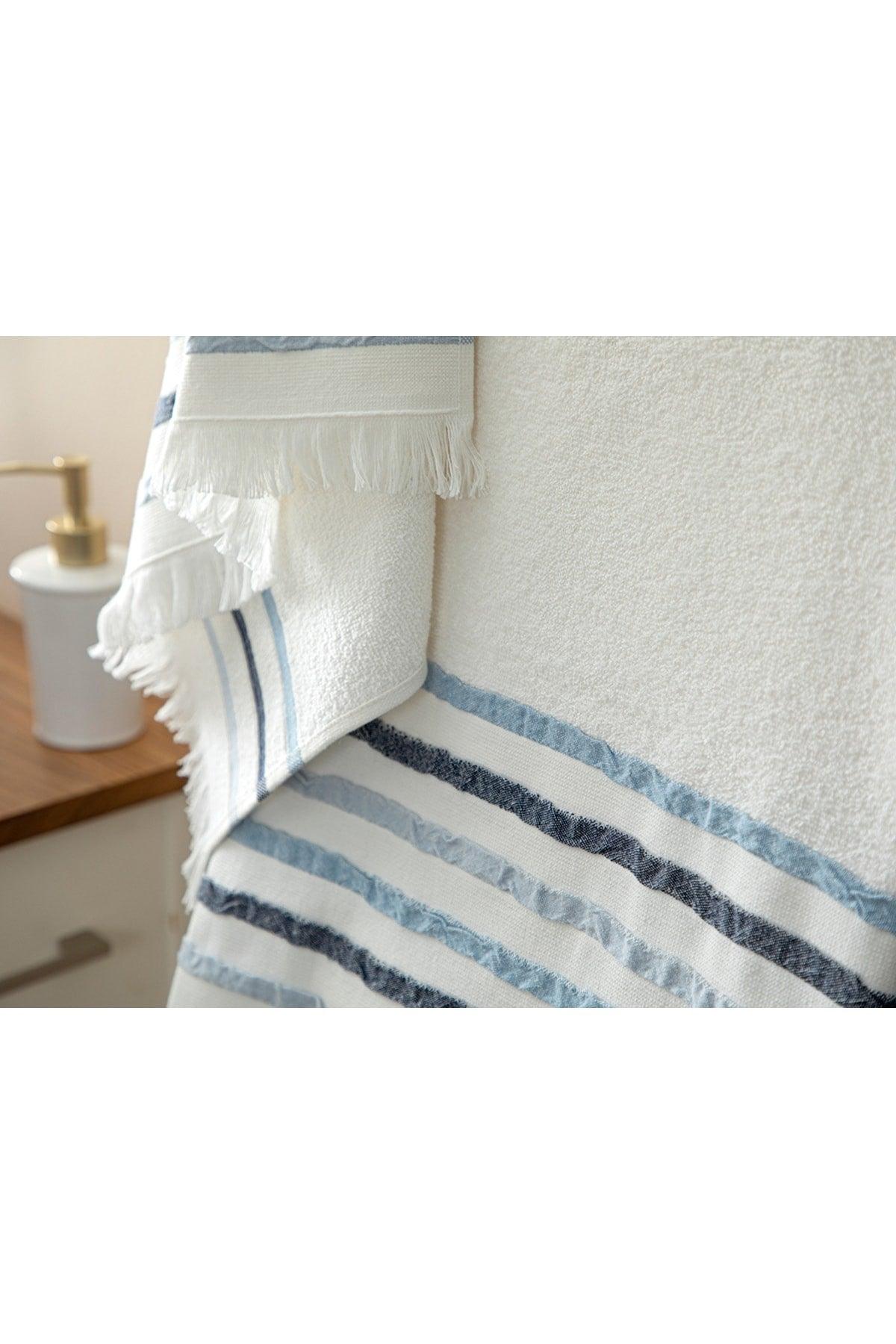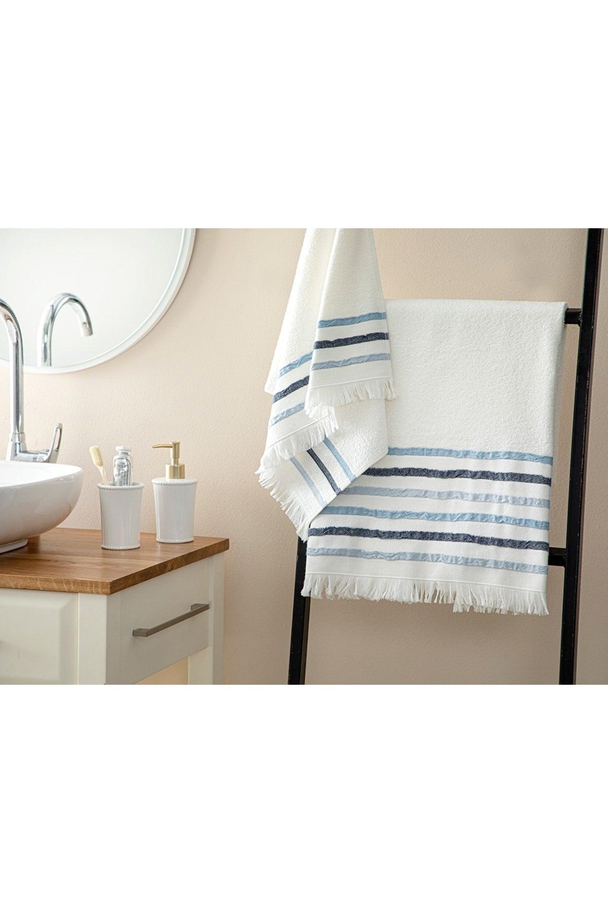 Neues Retro -Badetuch aus Retro -Baumwolle 50 x 85+75x150 cm blau
